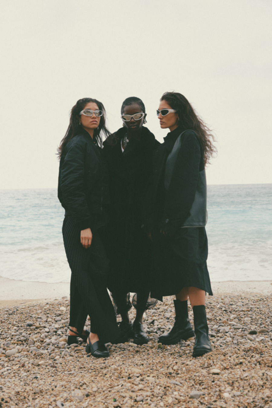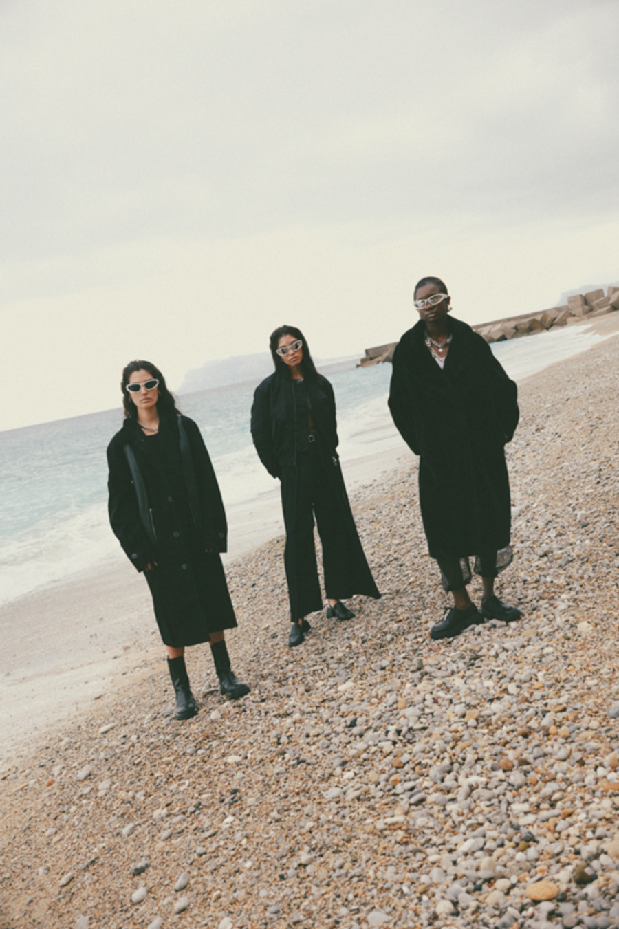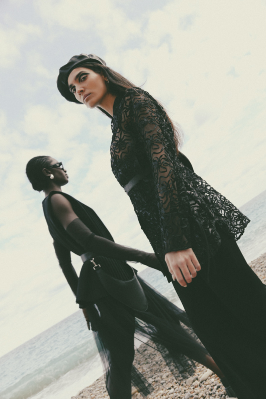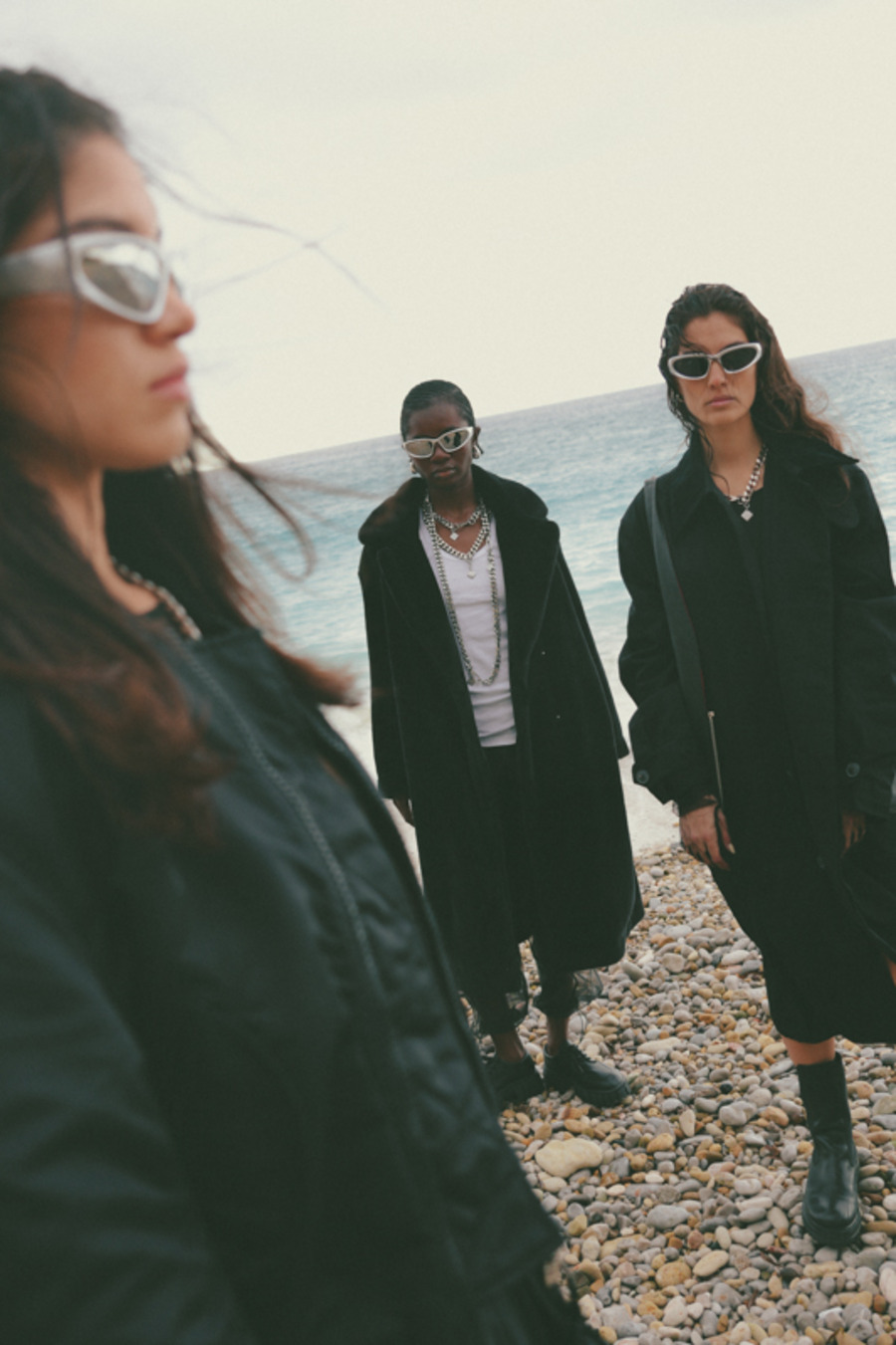 A KALTBLUT exclusive. “This editorial is inspired by a panoramic sea happening created in the 1960s by my ancestor, the internationally renowned artist and performer, Tadeusz Kantor. This project was deeply influenced by his groundbreaking work, capturing the contrasts between nature’s raw power and the elegance of fashion.” says photographer Hanna Kantor about the editorial. The models are Pamela, Gisella, and Simona. Make up by Federica Patellaro. Styling by Nora Schimmenti using MM6 Maison Margiela, NARRe, Balenciaga, Acne Studios, Pinko, Stand Studio, Ganni, Dolce&Gabbana, Prada. Dron Operator was Vito Di Benedetto.
