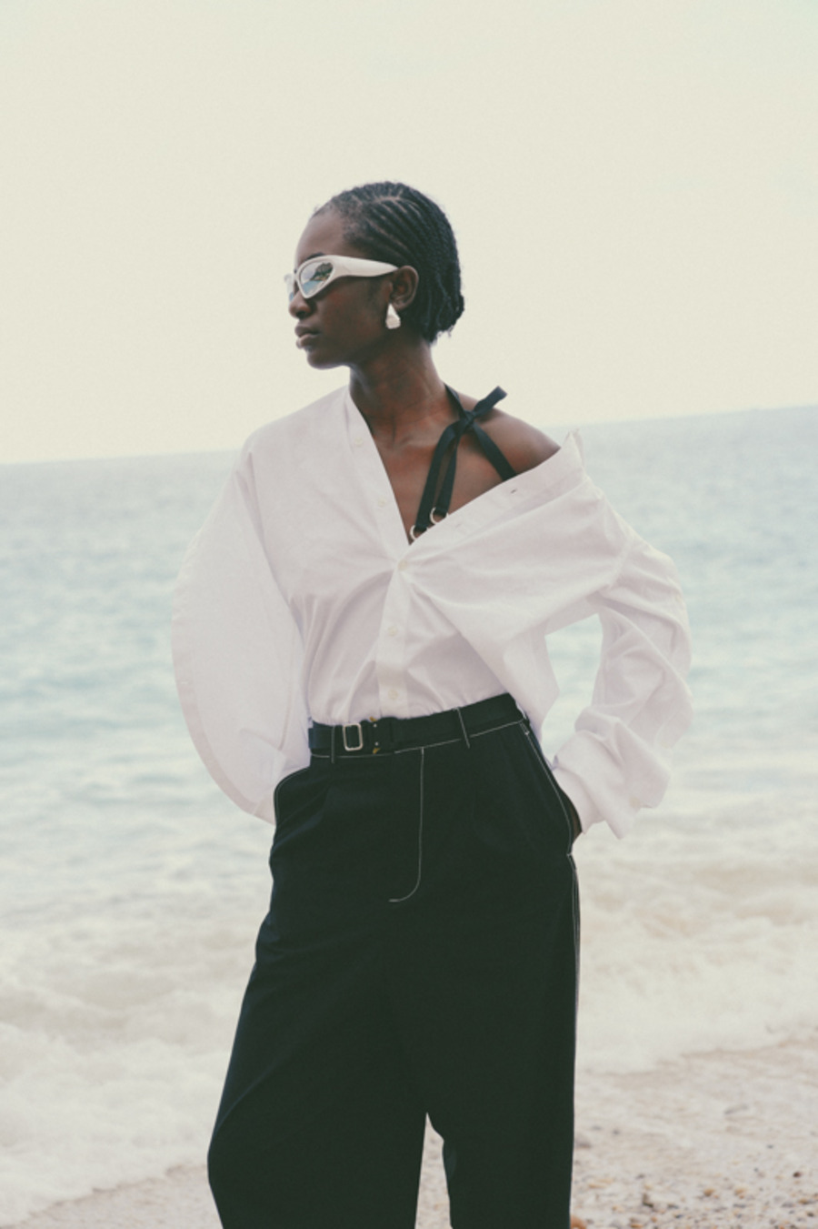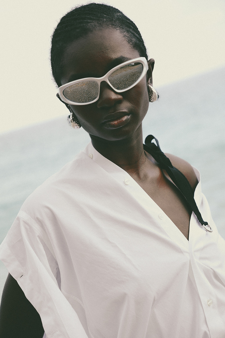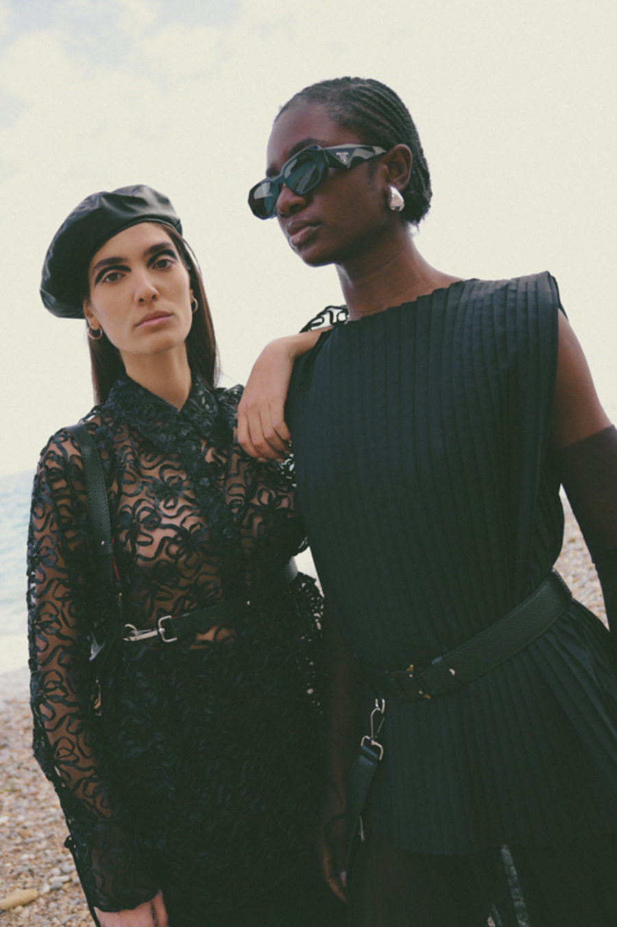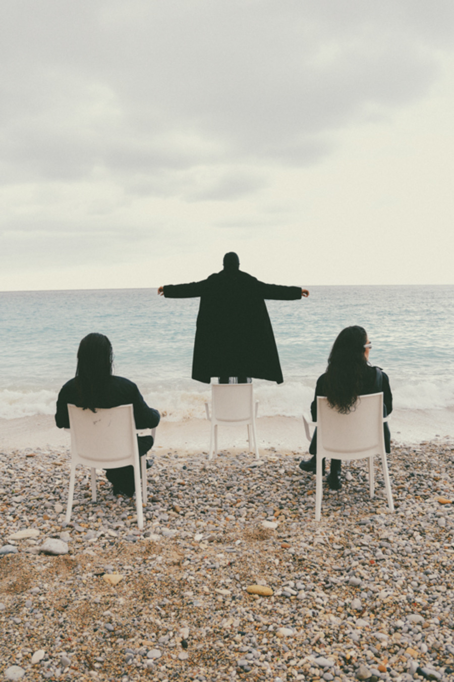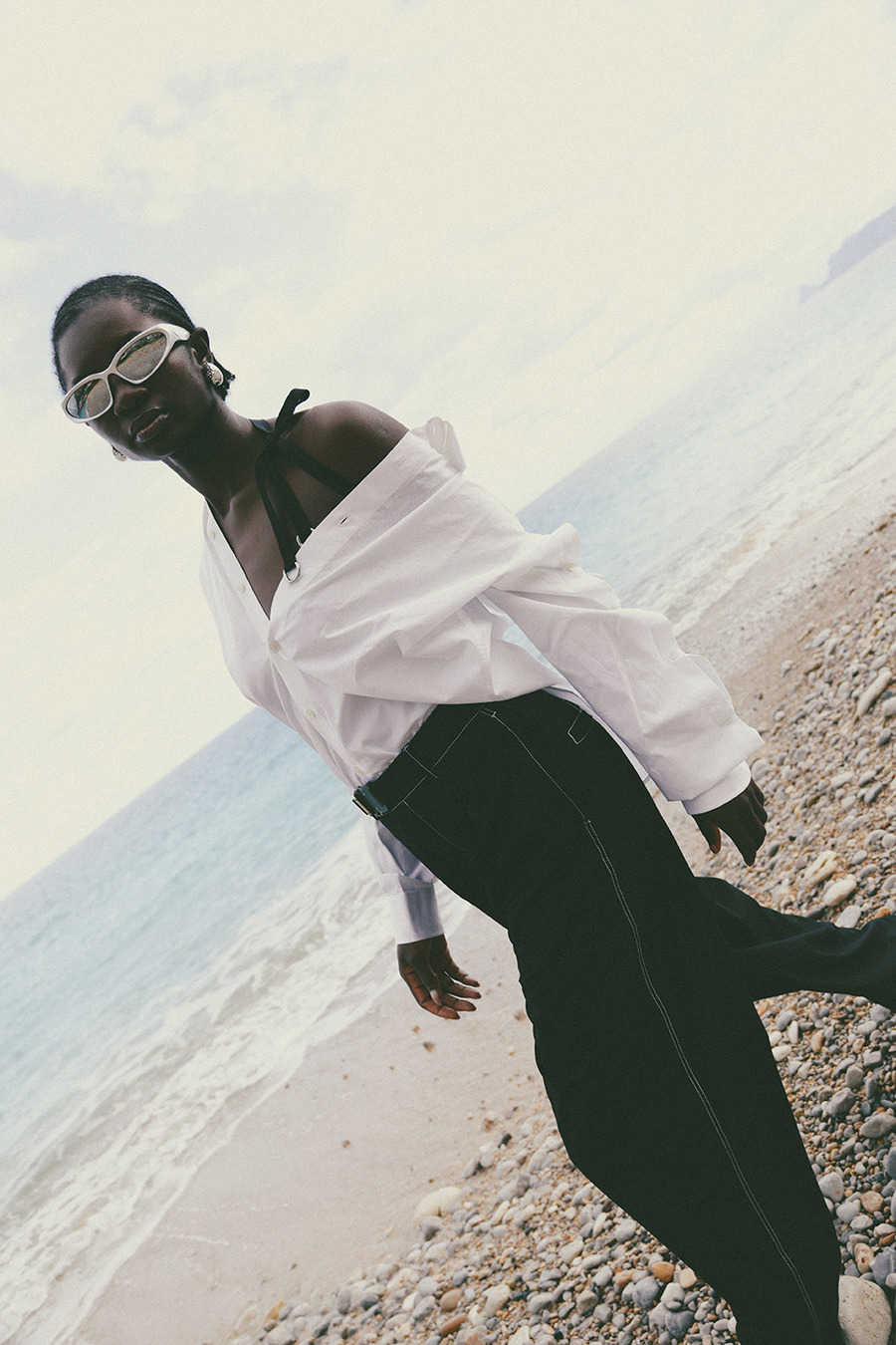 A KALTBLUT exclusive. “This editorial is inspired by a panoramic sea happening created in the 1960s by my ancestor, the internationally renowned artist and performer, Tadeusz Kantor. This project was deeply influenced by his groundbreaking work, capturing the contrasts between nature’s raw power and the elegance of fashion.” says photographer Hanna Kantor about the editorial. The models are Pamela, Gisella, and Simona. Make up by Federica Patellaro. Styling by Nora Schimmenti using MM6 Maison Margiela, NARRe, Balenciaga, Acne Studios, Pinko, Stand Studio, Ganni, Dolce&Gabbana, Prada. Dron Operator was Vito Di Benedetto.