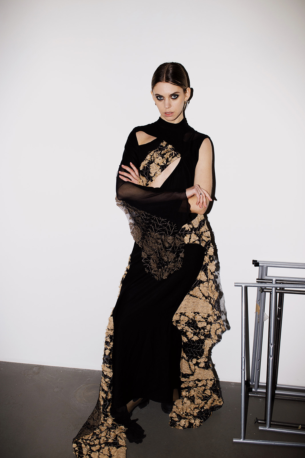 The entire event was held in semi-darkness, as a reminder that many Ukrainians now live in difficult conditions, without heat and light. The palette of the collection consists of black, yellow and blue colours: yellow-blue shades are close to the Ukrainian flag, and the combination of black and blue symbolizes the hope and difficulties faced by the people of Ukraine.