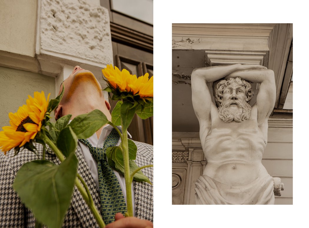 A KALTBLUT exclusive menswear editorial. The sound of Yellow is photographed by Aura Skulskyte. Model Lukas Karvelis. Styled by Vilte Kindereviciute. Make up by Juste Zilionyte.