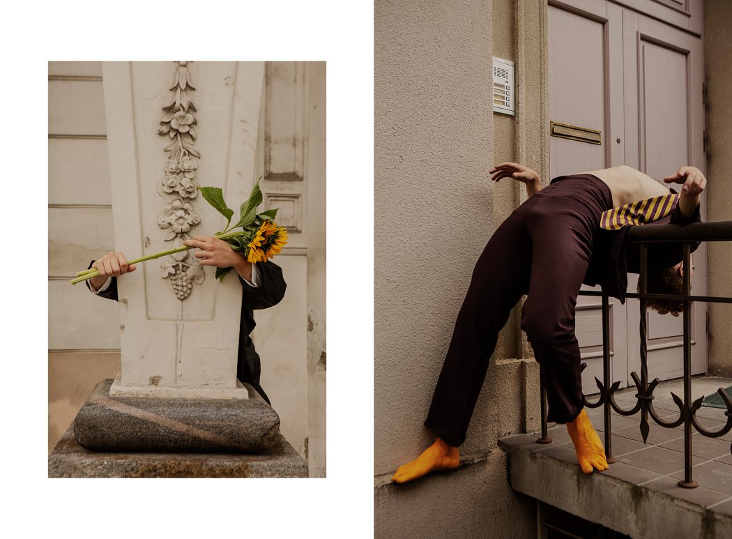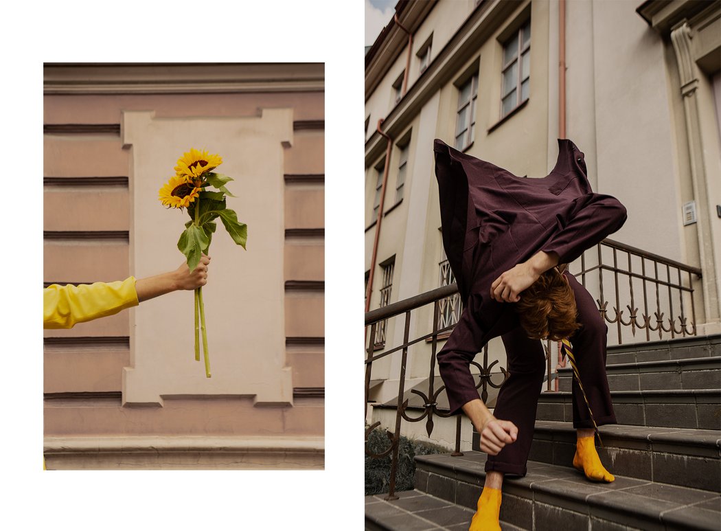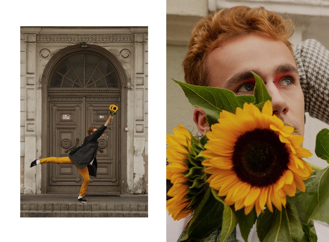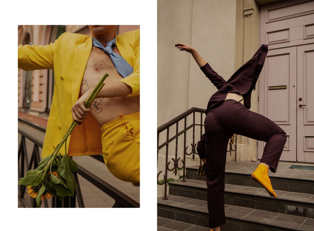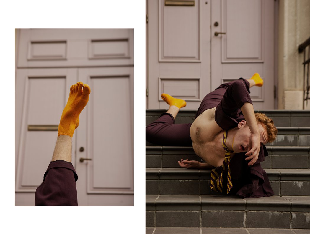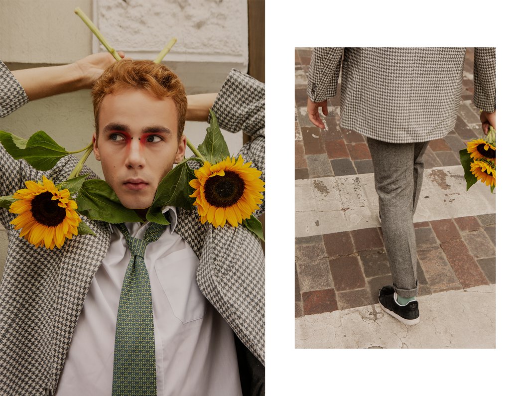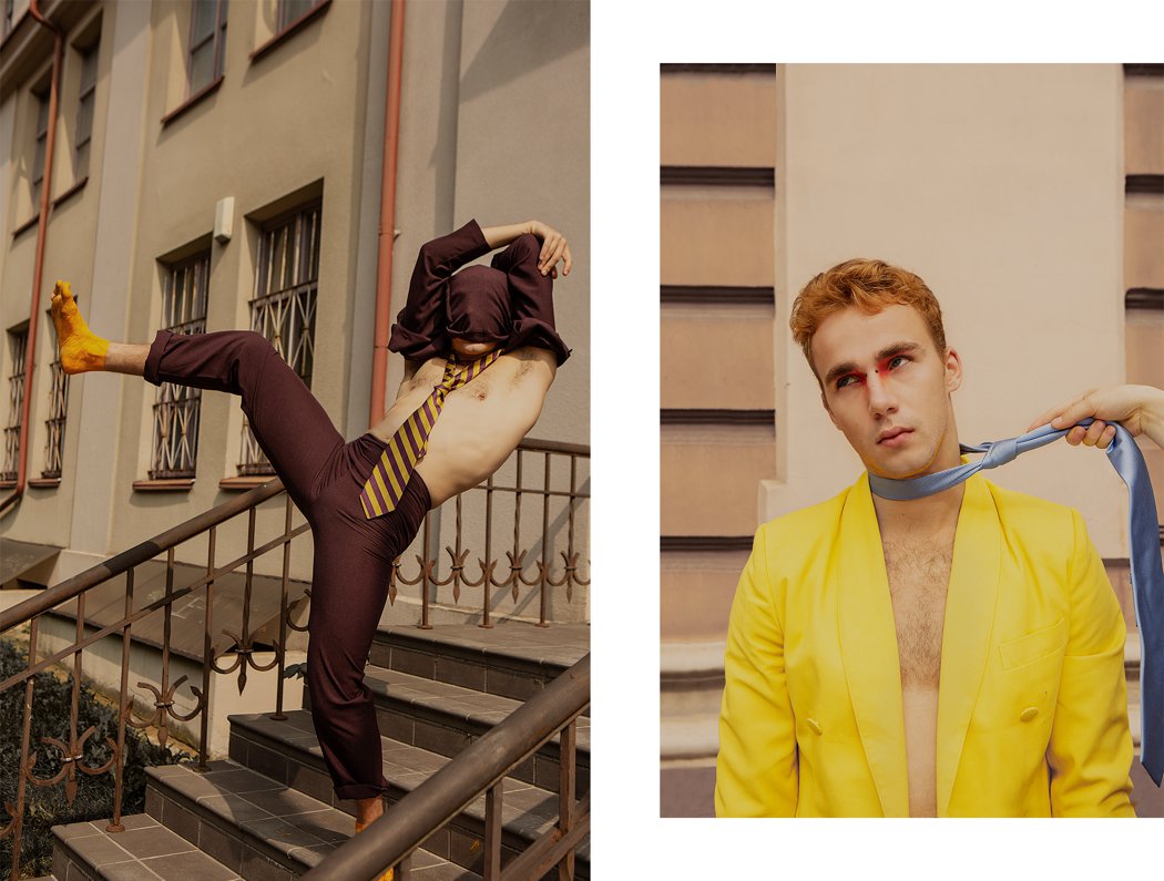 A KALTBLUT exclusive menswear editorial. The sound of Yellow is photographed by Aura Skulskyte. Model Lukas Karvelis. Styled by Vilte Kindereviciute. Make up by Juste Zilionyte.
