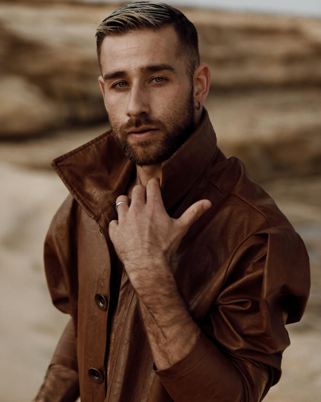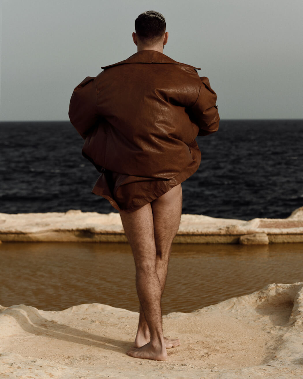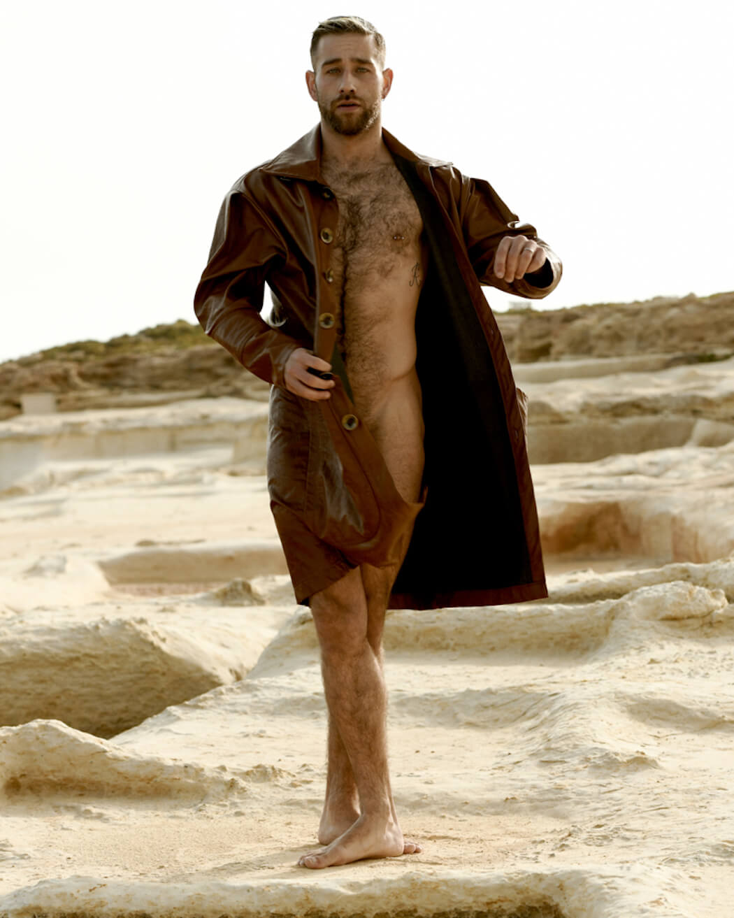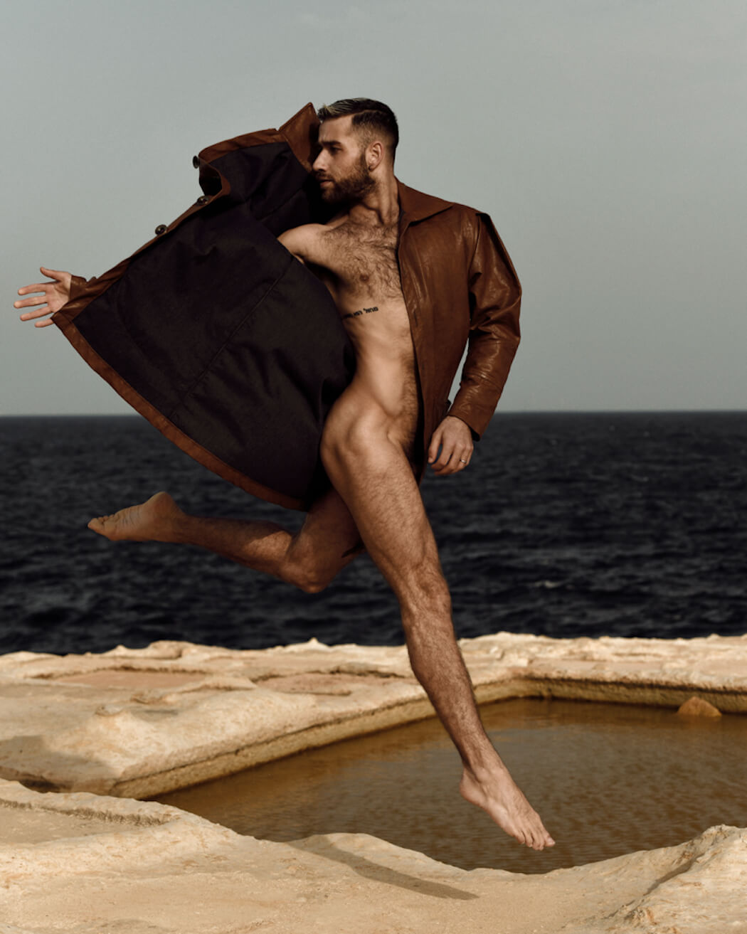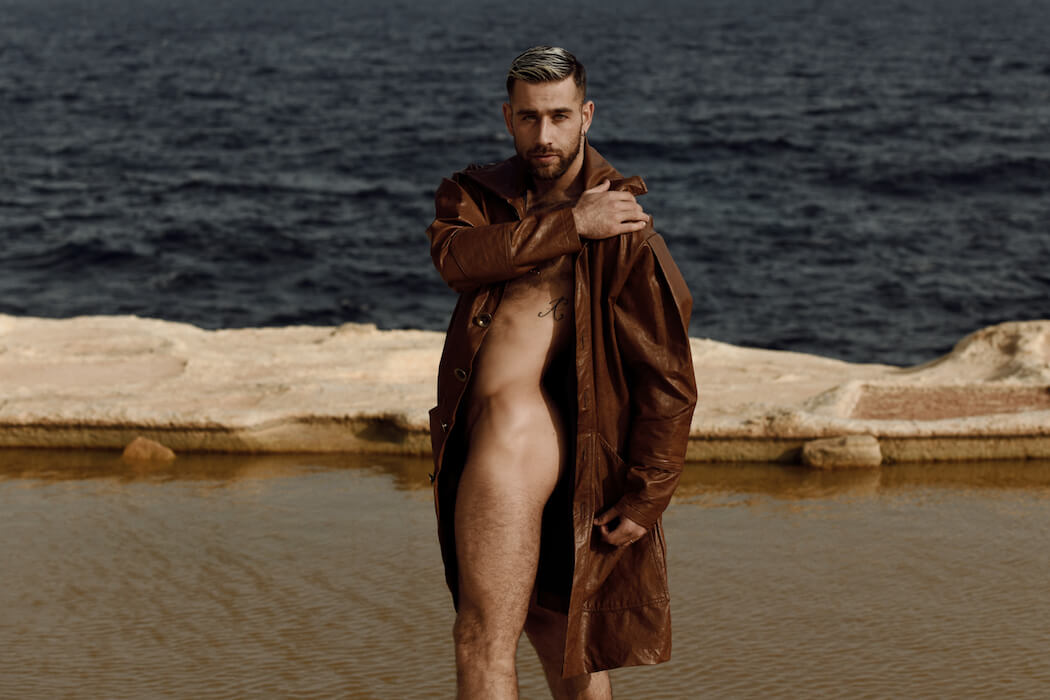A KALTBLUT exclusive male model feature. The model is Abel Hernández. Photography by Kris Micallef. Coat by DANTE.