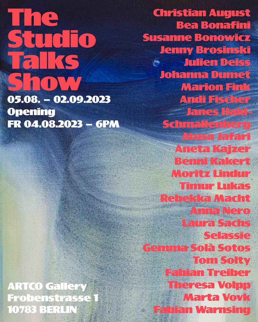 ARTCO Gallery Presents: A Dynamic Group Exhibition! Join ARTCO Gallery in Berlin from August 5th to September 2nd, 2023, for an exciting group show featuring a diverse range of artists including Christian August, Bea Bonafini, Susanne Bonowicz, Jenny Brosinski, Julien Deiss, Johanna Dumet, Janes Haid-Schmallenberg, Atusa Jatari, Aneta Kajzer, Benni Kakert, Moritz Lindur, Timur Lukas, Rebekka Macht, Anna Nero, Laura Sachs, Selassie, Gemma Solà Sotos, Tom Solty, Fabian Treiber, Theresa Volpp, Marta Vovk, and Fabian Warnsing. The exhibition, curated by the talented Malte Bülskämper, will showcase the works of these artists and spark an engaging discourse.