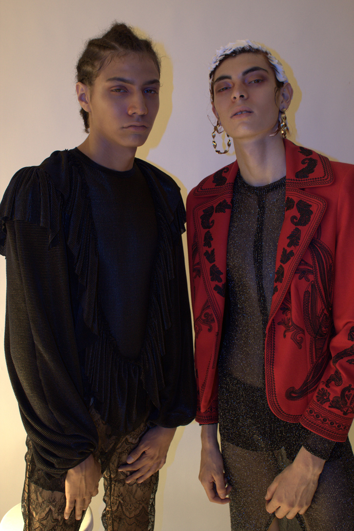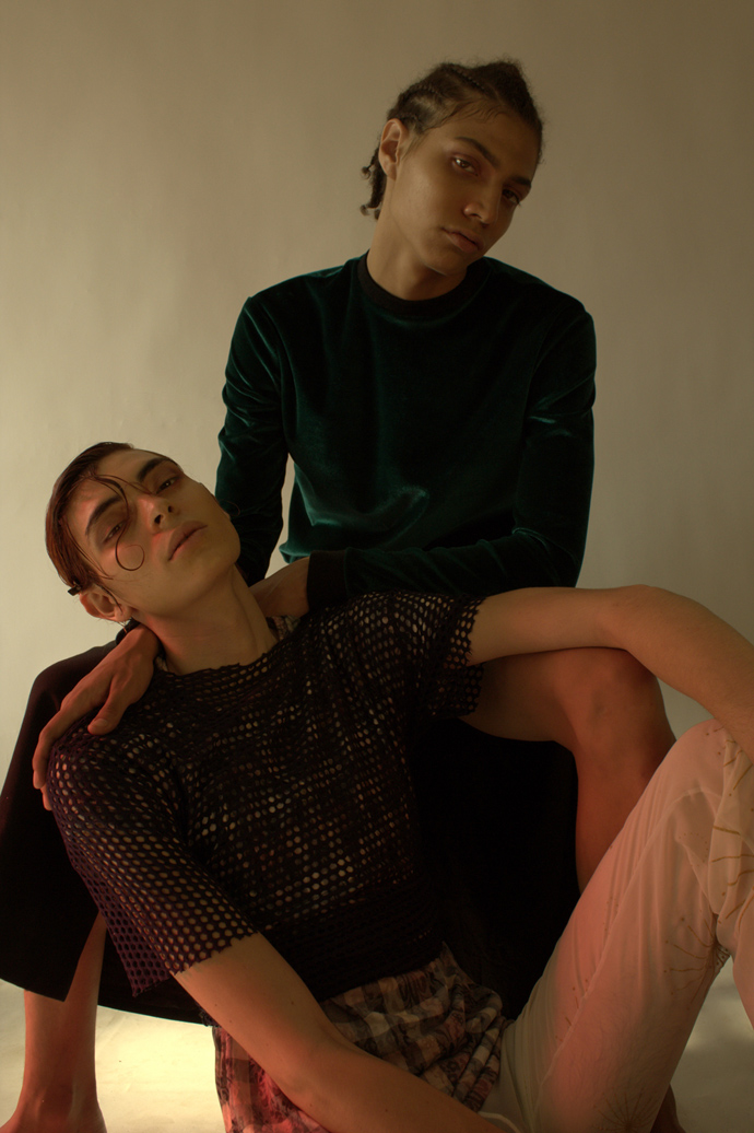 A KALTBLUT exclusive menswear fashion editorial. Photography by FRANCK MORFIN. Models are JORGE ARAIZ and IVAN MUÑOZ. Styling by FERNANDA OSEGUERA. All fashion by HMMVEE STUDIO & AVIESC. Make up by JOSS LARA. Hair done by ROBERTO MARTINEZ.
