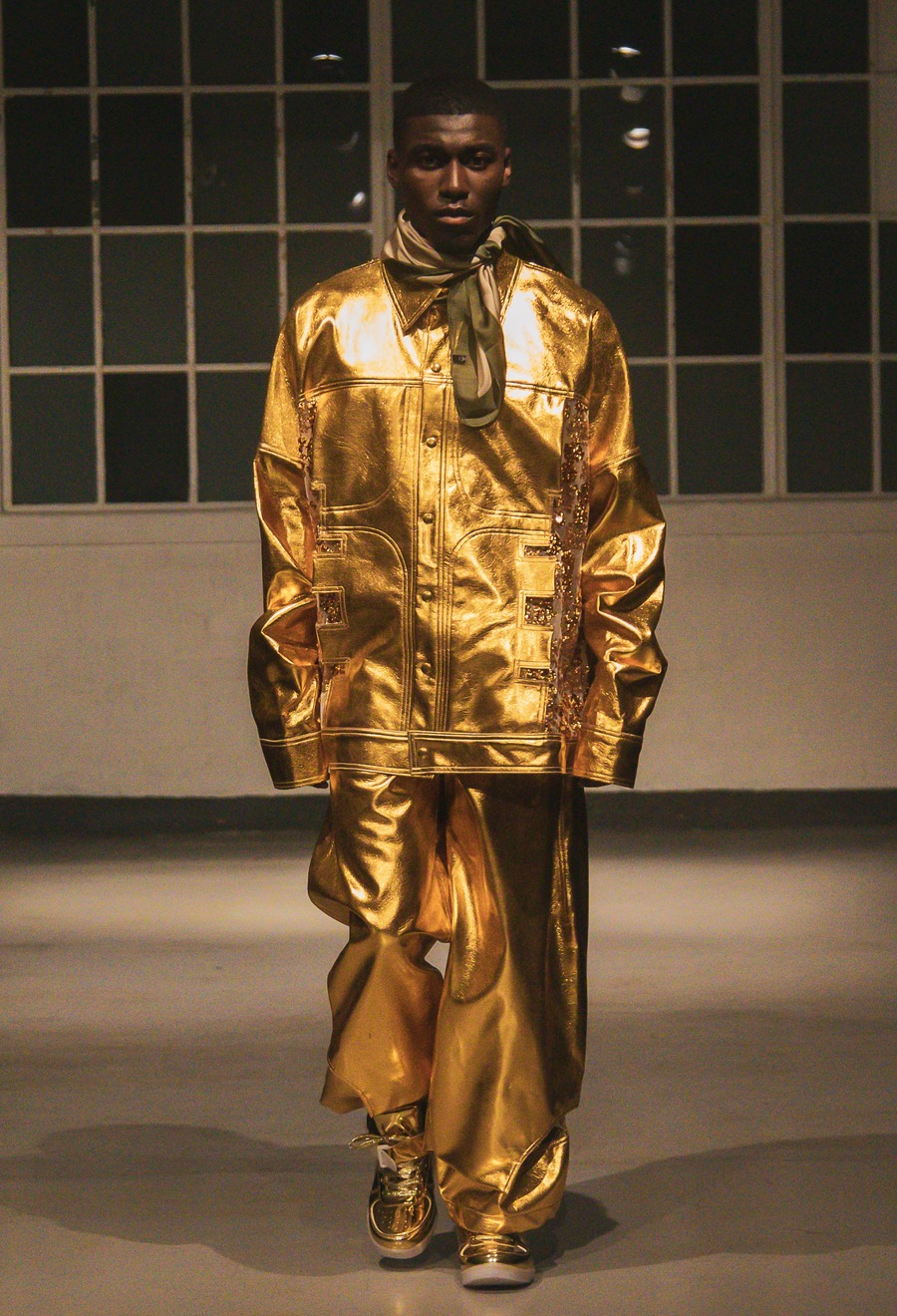 Anna Salad @salted.greens explored the concept of gaining riches and wealth through others’ naivete to demonstrate the falsity surrounding online money manipulation. Think streetwear-inspired garms in splendid expensive liquid gold from head to toe.