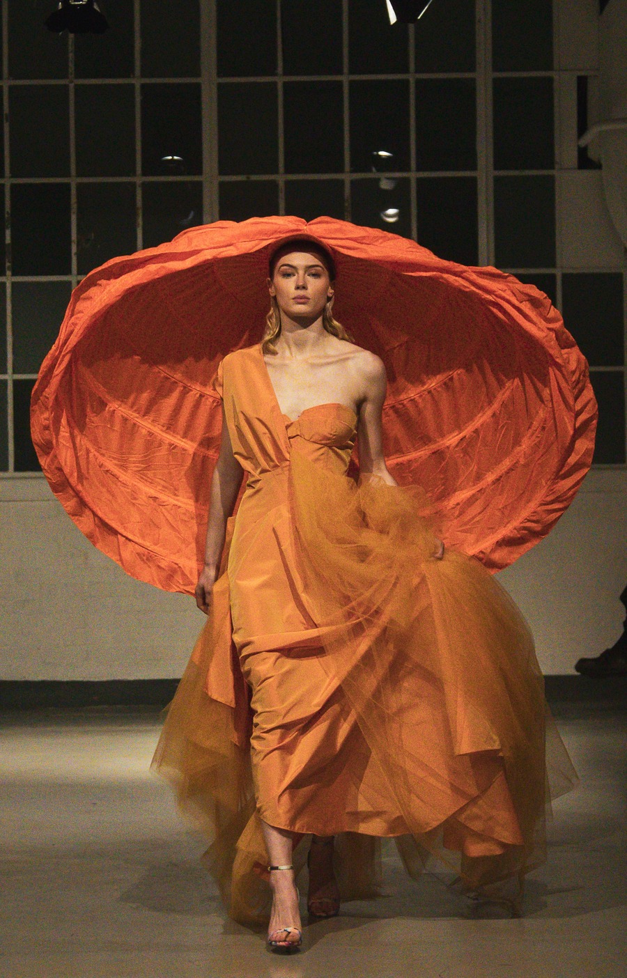 Finally, Mark Buendia @navoradesigns closed the runway with a sensational collection based on the Philippine jeepney, “Le Parcours”. A narrative about enjoying life’s journey to reach success. This collection is a colorful celebration of ascension, with oversized and vibrant hats in bold pink, green, and orange to create the impression of excessive, elegant birds.