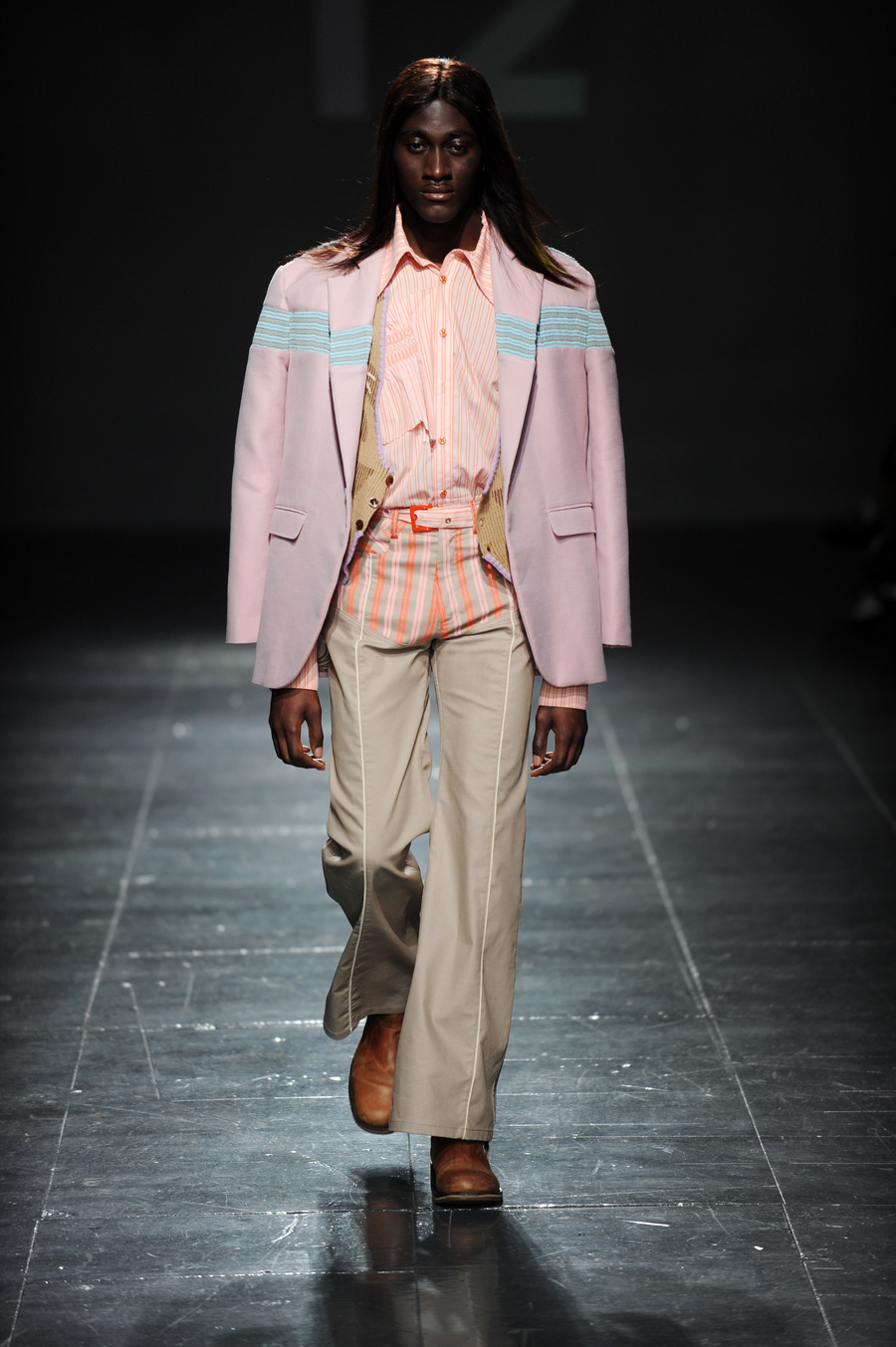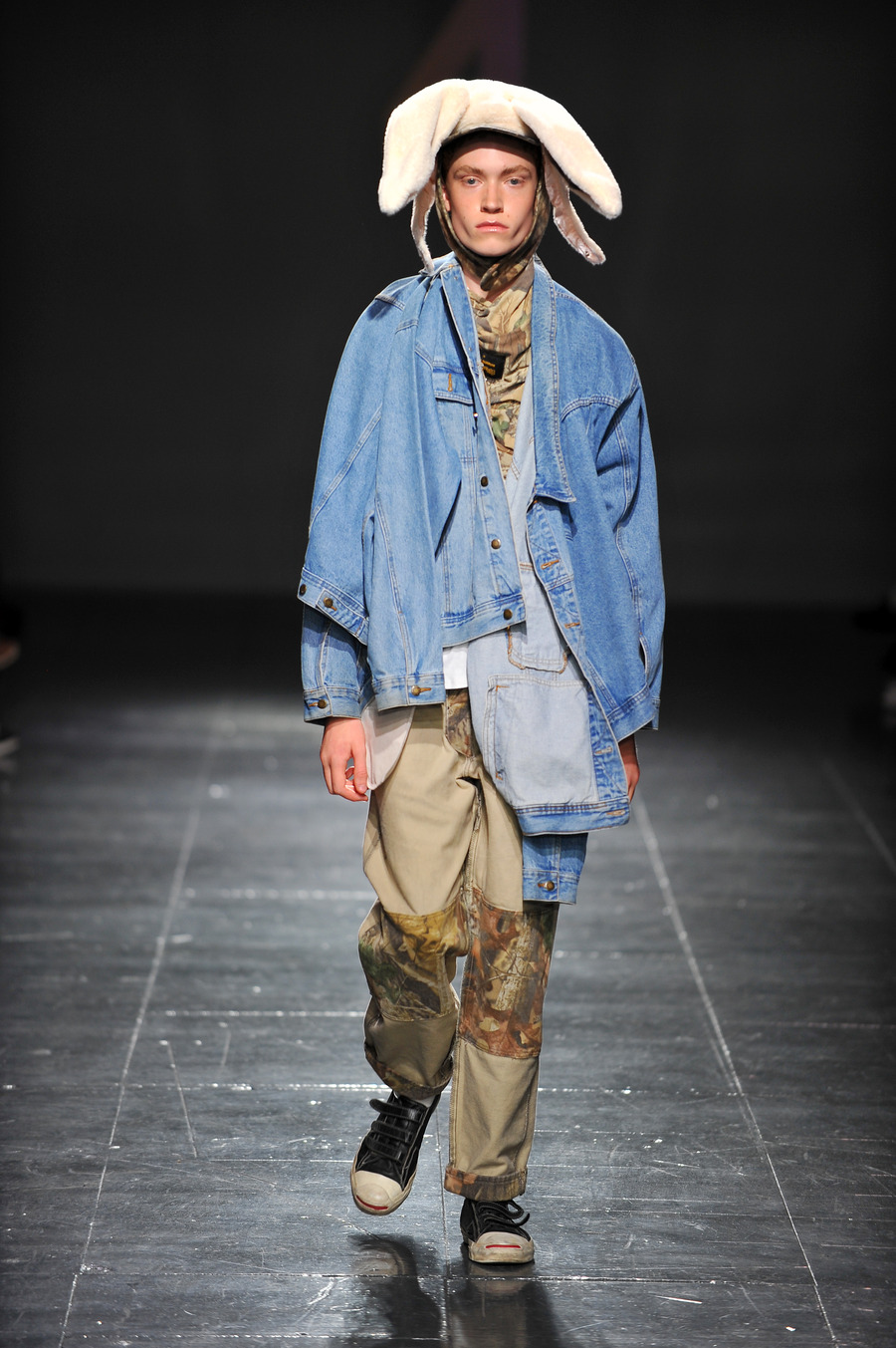 served DIY 90s in a collection combining the ideas behind modular buildings, stationery and 90’s indie music culture created through the use of classic menswear pieces including the duffle coat and parka. These classics have been deconstructed and re-imagined, reflecting the modular nature of modern-day buildings, materials and colours and made more contemporary through the application of materials such as vinyl and acrylic alongside timeless wools and denim. The silhouettes give a more relaxed, street-wear feel to the collection and the accompanying stationery-inspired accessories inspired by and in homage to Judy Blame.