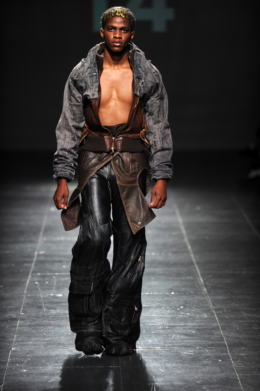 A denim resurgence, obsessively collecting second-hand garments and exploiting their provocative designs – broken up and reorganised into new ones – to create a dynamic and driven wild masculinity. Exploring new cutting concepts to preserve the original structure of the garment, investigating the characteristics of the fabric and combining different thicknesses of fabrics to produce innovative draping techniques this collection brings sustainability and a sense of rebellion.