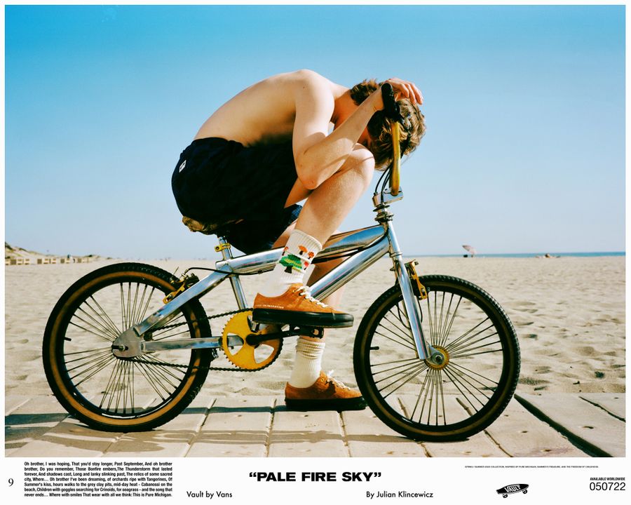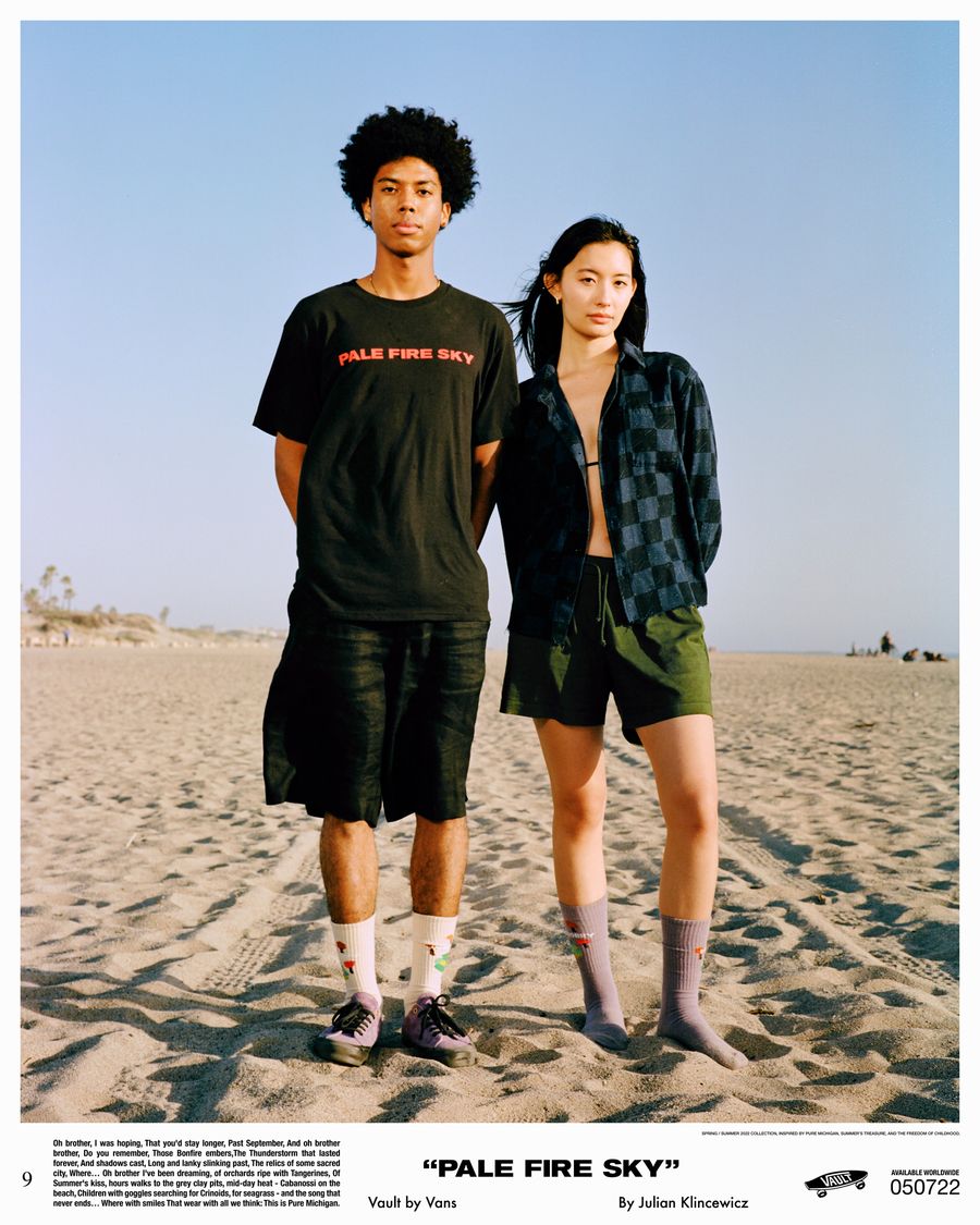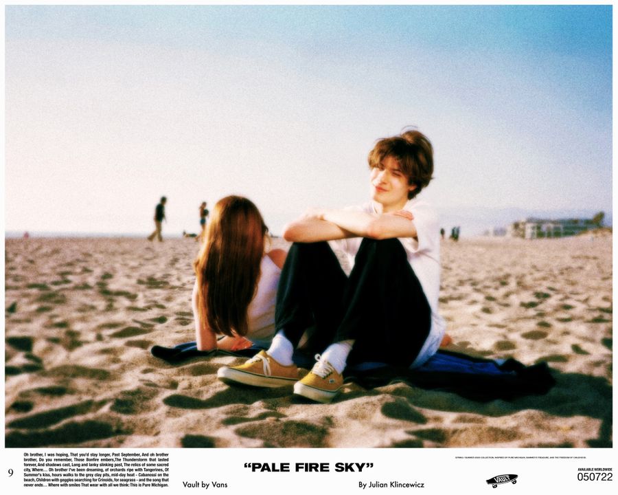 Vault by Vans reunites with California based multidisciplinary artist Julian Klincewicz, for a head-to-toe spring/summer collection. The collection takes inspiration from his childhood summers – spent in Union Pier, Michigan, among family & friends. The Vault by Vans x Julian Klincewcwiz “Pale Fire Sky” collection is available at www.vans.de