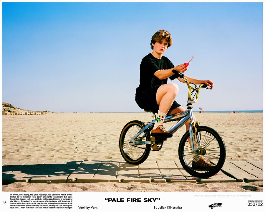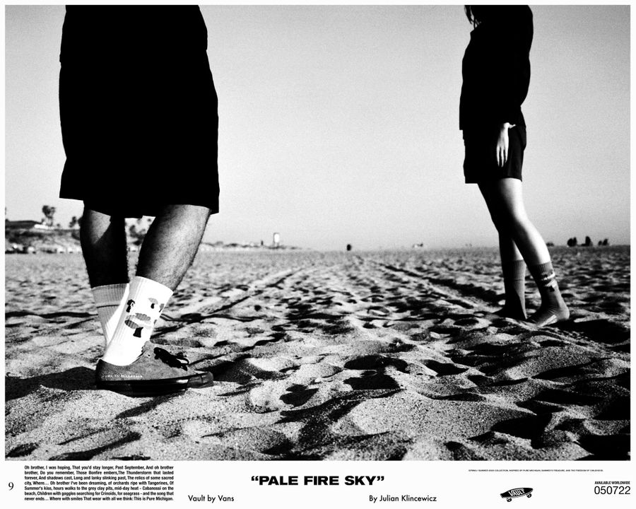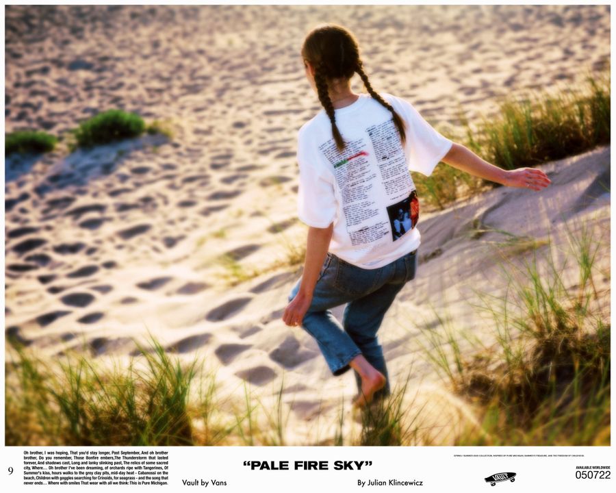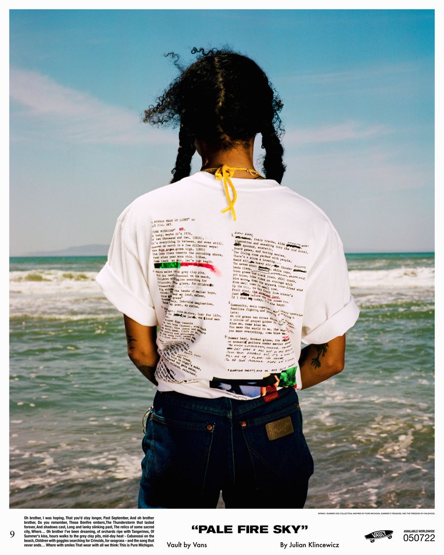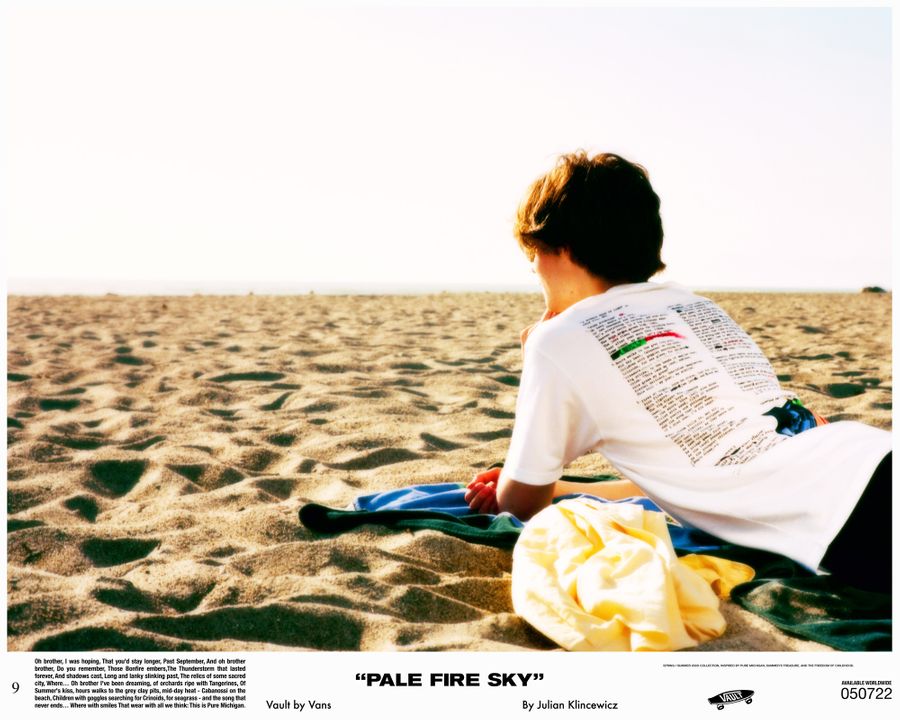 Vault by Vans reunites with California based multidisciplinary artist Julian Klincewicz, for a head-to-toe spring/summer collection. The collection takes inspiration from his childhood summers – spent in Union Pier, Michigan, among family & friends. The Vault by Vans x Julian Klincewcwiz “Pale Fire Sky” collection is available at www.vans.de