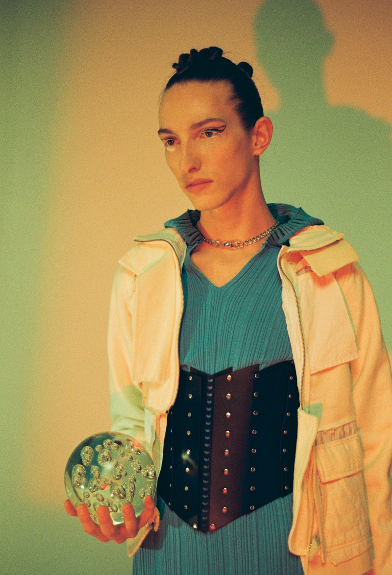 Belt and necklace from PERLENSAU Jacket from KARALEEV