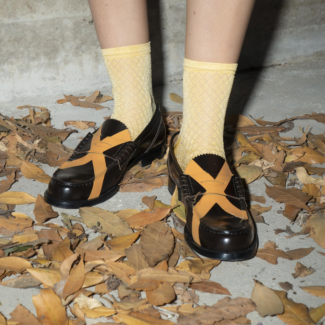 The sole is leather with the exclusive ‘X’ injected in rubber for a better grip and sewn with the exclusive Blake stitch.