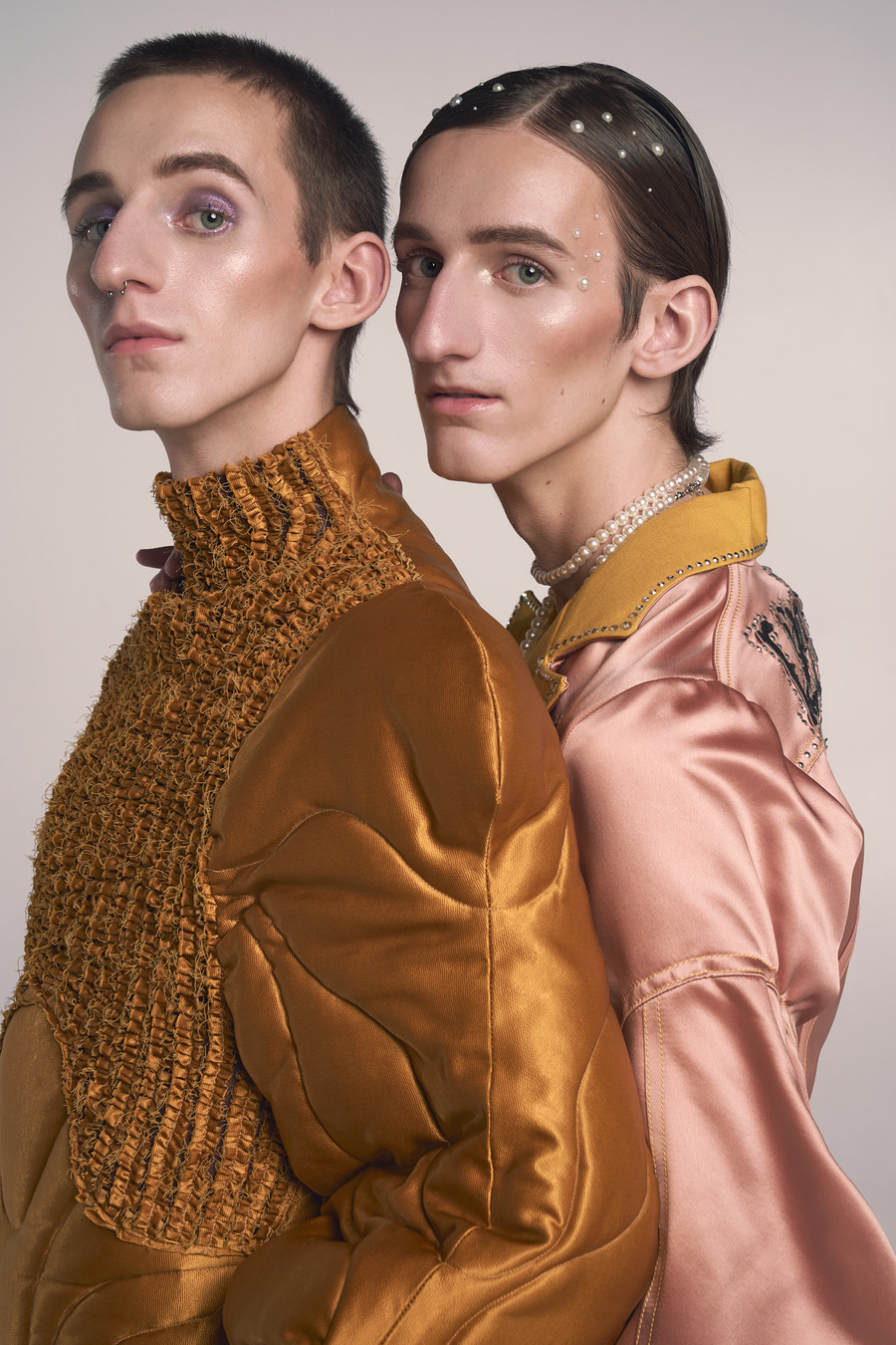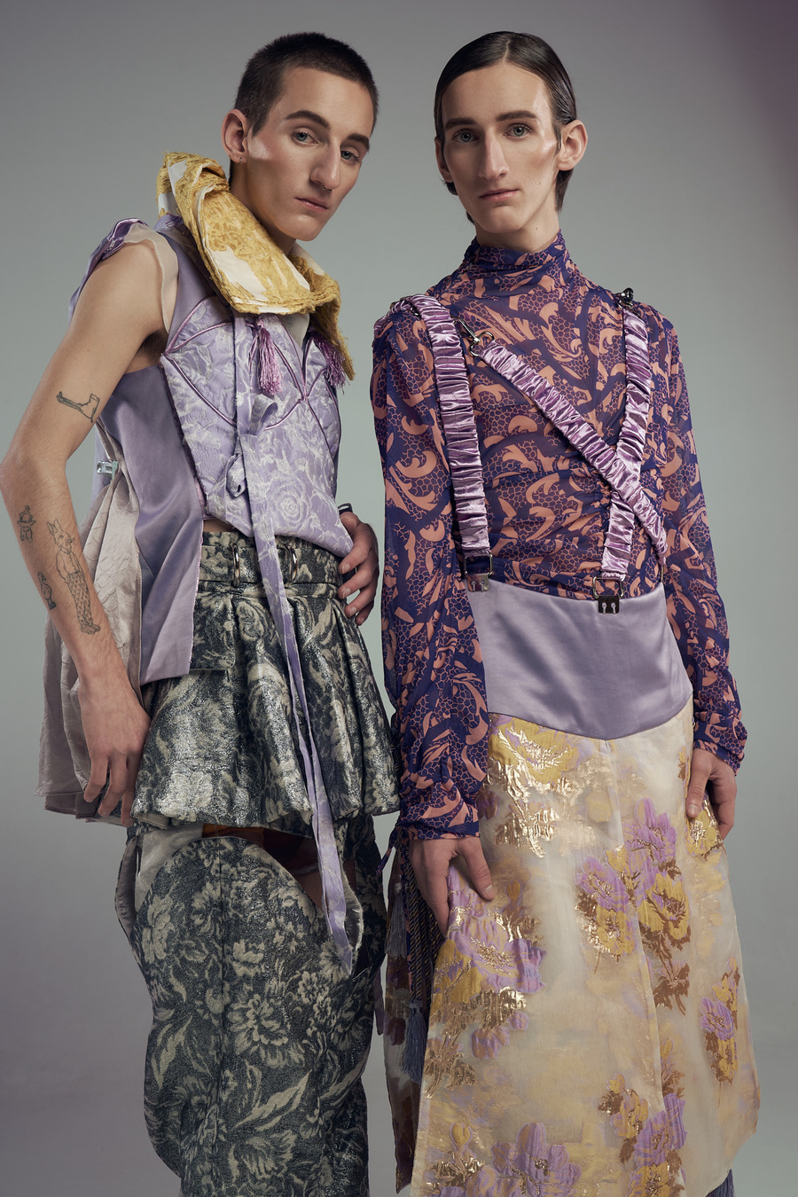 A KALTBLUT exclusive. Photography by Simon Rogghe. The models are Syl Hendrickx & Tybe Hendrickx. Styling by Cynthia De Blander. Makeup and Hair by Sarah Lumea. The brands used are Liu Zexian, Felix Luyckx, and Louise Luyckx.