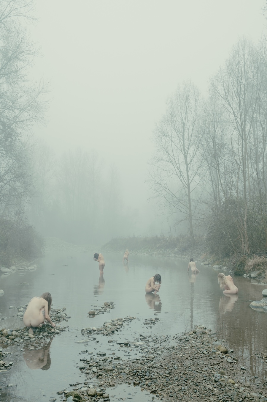 “They Return To Their Earth” is a project born during the Covid-19 pandemic, exploring the humans of the day after. It sits halfway between the dreamlike and the dramatic, shifting from dark, sculptural moments to lighter, more ethereal scenes. It reverses the hierarchy between body and landscape: the figures do not dominate the environment but are absorbed by it, creating a silent narrative about our fragility. The body becomes a trace, a threshold between presence and disappearance.
