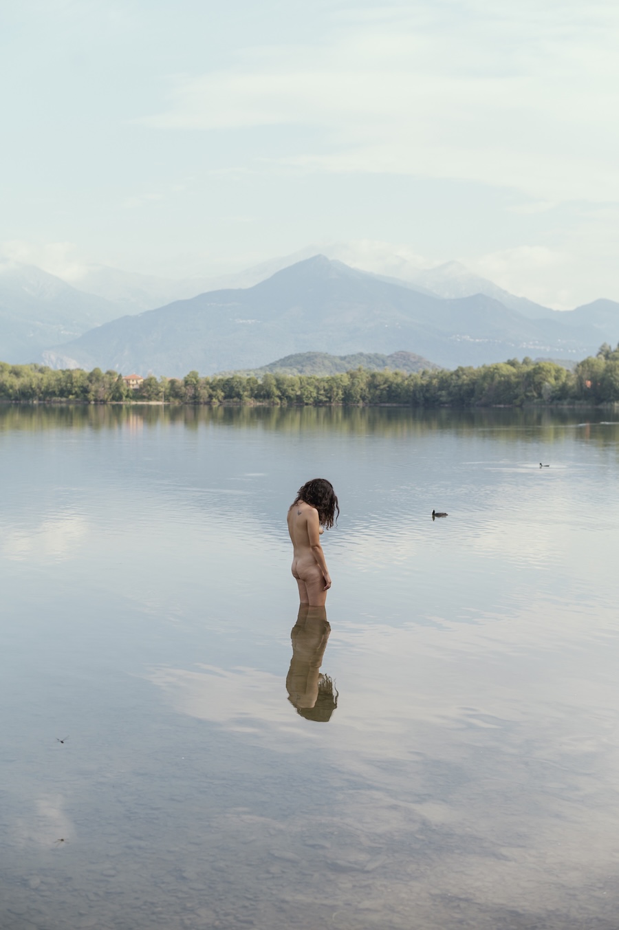 In Masini’s photographic gaze, a body condenses and becomes universal, representing, even in its references to symbolist painting, an absolute entity that encapsulates the universal in the particular. In these images, which we can describe as unresolved, the entire intention is to stimulate a reflection that can arise from a question: What is my role in all of this? This is the question that those who look at Masini’s photographs end up asking themselves, without finding a shouted answer, but rather a suggestion, a spark that can be received or not. The artist’s task is to provoke questions, to induce an interruption in the flow of everyday thoughts, and to trigger a kind of leap from simplistic reasoning to complexity. In this series of photographs, the simplicity of the body inserted into nature forces us to pause and divert our thinking from a simple descent towards calm harbours to a more winding, less easy, but more meaningful journey.