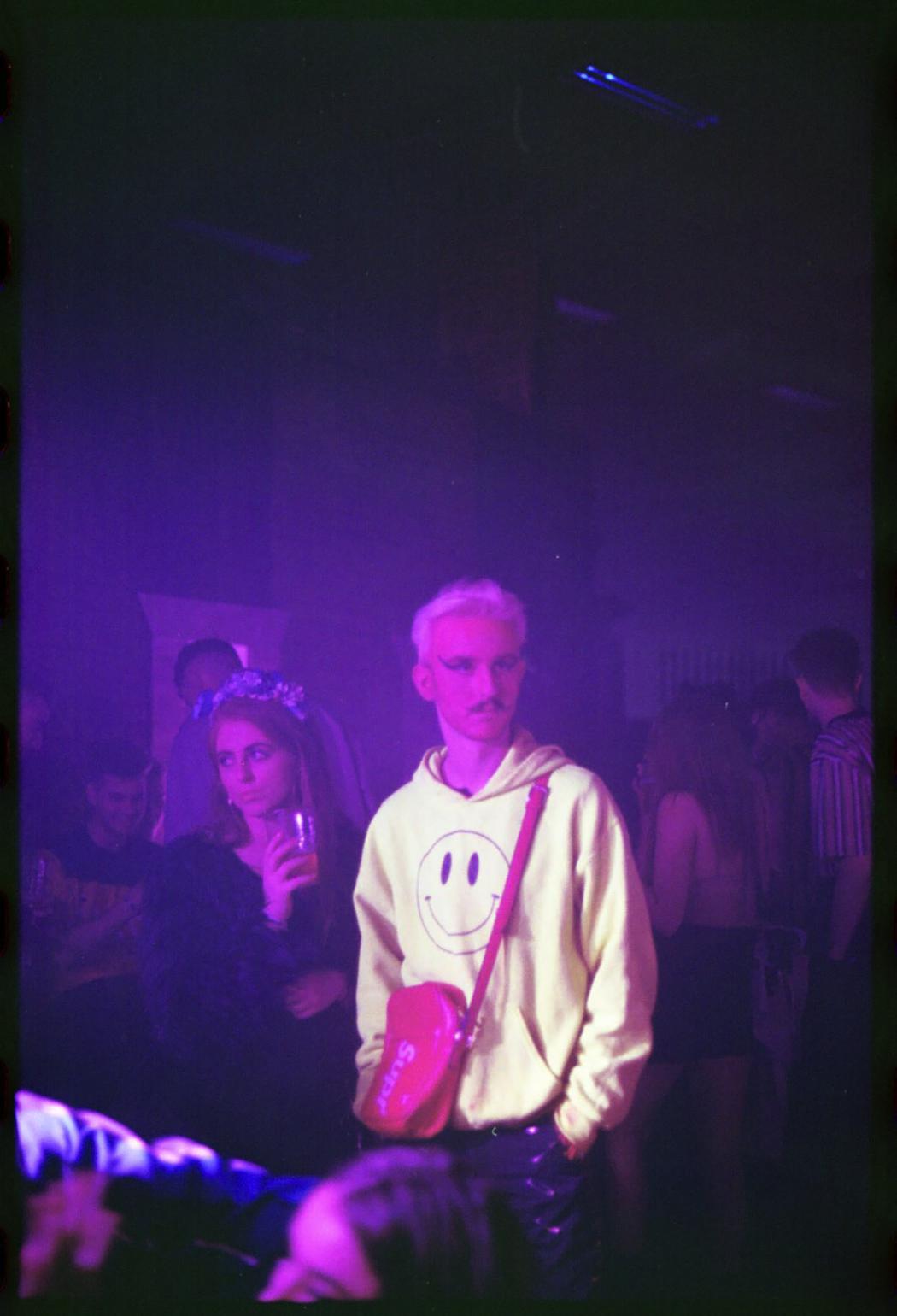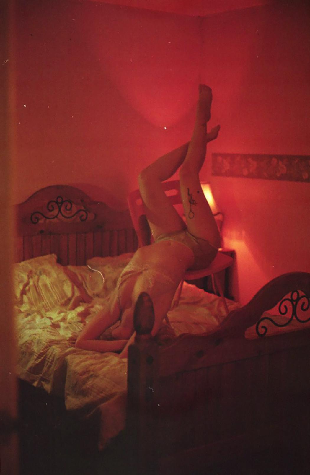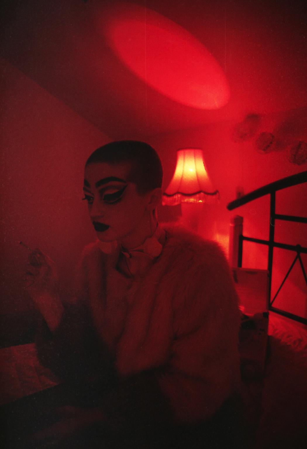 I document queer youth through my interactions, stumbling around on this island in Northern Ireland. Driven by a hazy aesthetic I invite the viewer to submerge into a world of my bleared emotions. Using lo-fi techniques to create an unpolished form with 35mm format photography and camcorders, colours glaze over dark backdrops and I immerse into a self-constructed personalised fantasy.”