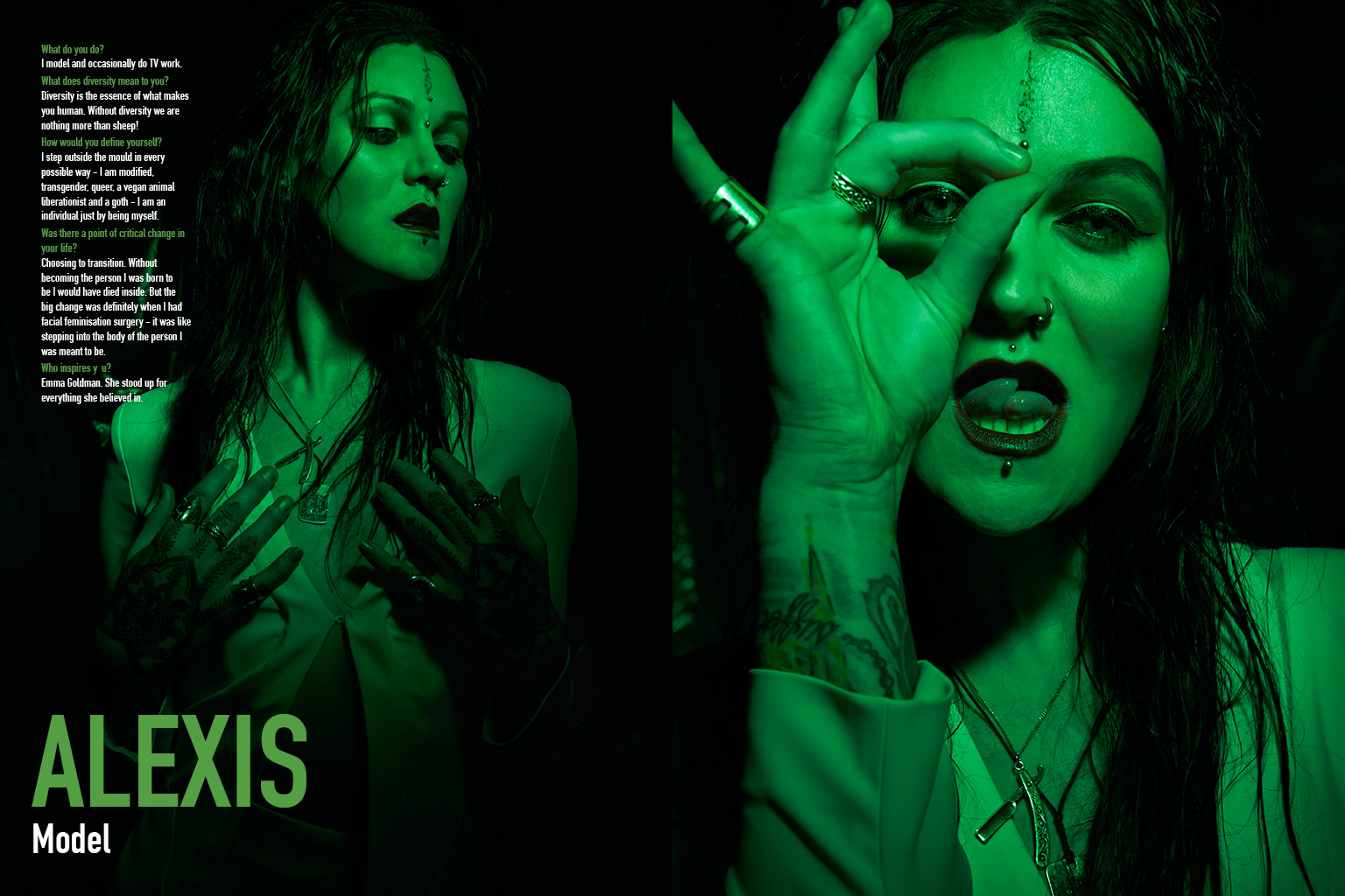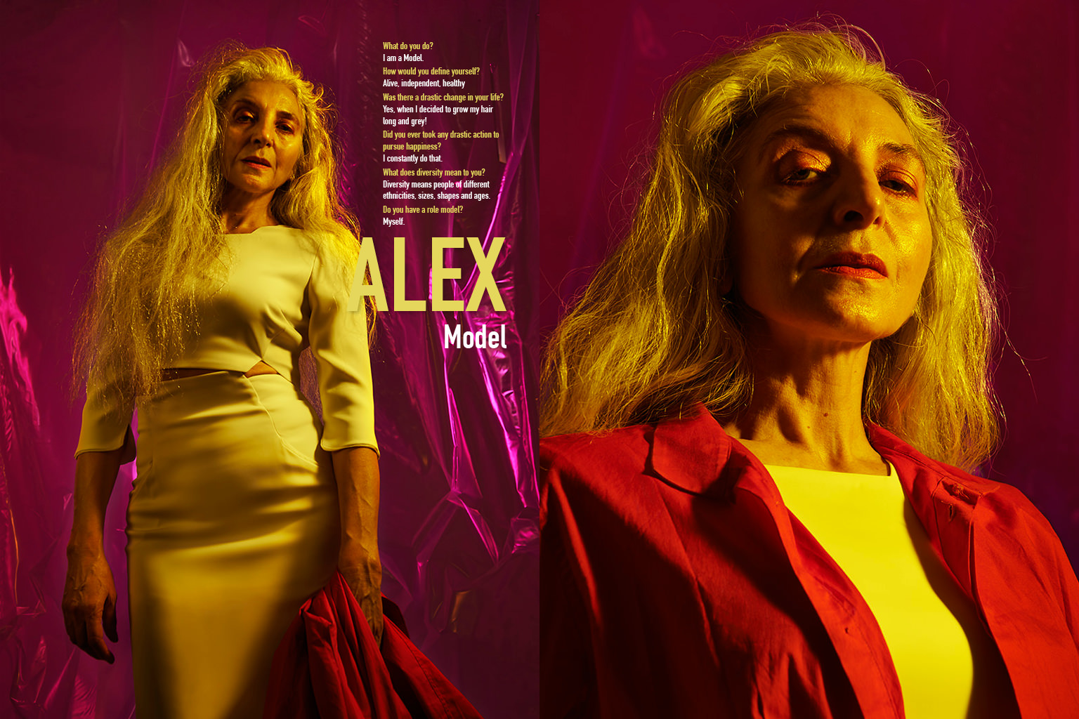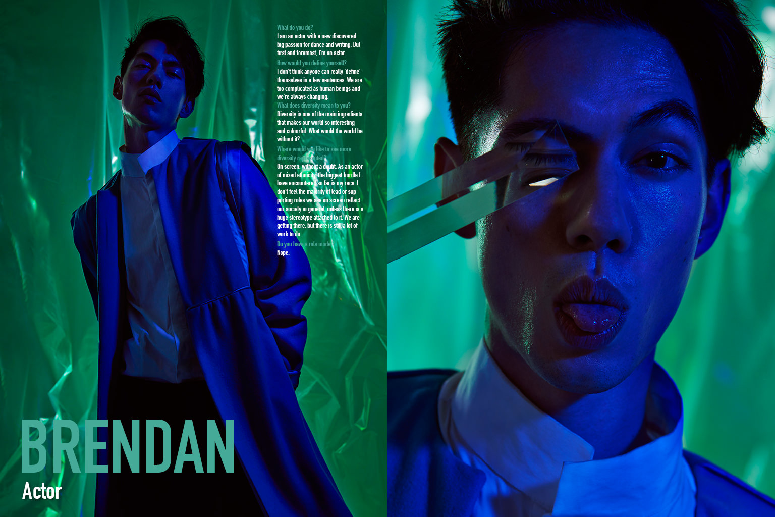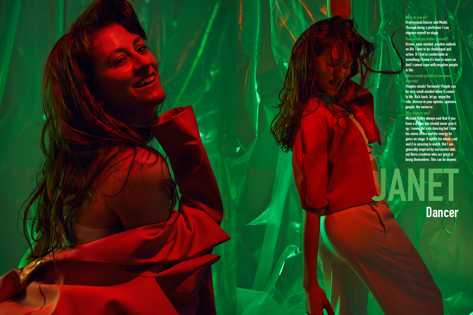 “This project’s aim was to celebrate London’s diversity. You hear a lot about the people in London who already made it or are on the verge of a break through. However you hardly hear about the people among us, the people living everyday lives just like us. This project is supposed to celebrate the undiscovered beauty of London, showcasing it’s everyday diversity, all based around the entertainment business. Whether it is events or film, music or fashion, there are a lot of unheard voices out there that want to be heard or seen. Each individual was picked due to a specific quality, that may very well be considered as a minority in their respective field. They were asked to bring a piece of jewellery that is dear to their heart as well as choose an item from the styling rail, which they identify most with. Followed by a questionnaire for them to fill out, the team created the colour scheme and way of representation based on their survey. This speed up the process of actually getting to know the subject in more depth. During their performance of shooting, each individual could also pick the music that would support their session. Having a broad song variety from Rihanna’s Work, classical music, Panic at the Disco, up to Ru Paul’s Sissy that Walk. The aim of the shoot was to raise these individuals to some sort of icon. Using bold colours to really draw the attention to them as well as to get rid of hair colour, skin colour and other differences. Essentially the project is aimed to take in all their diverse aspects and features, put them aside and show them in as an individual iconic personality.”