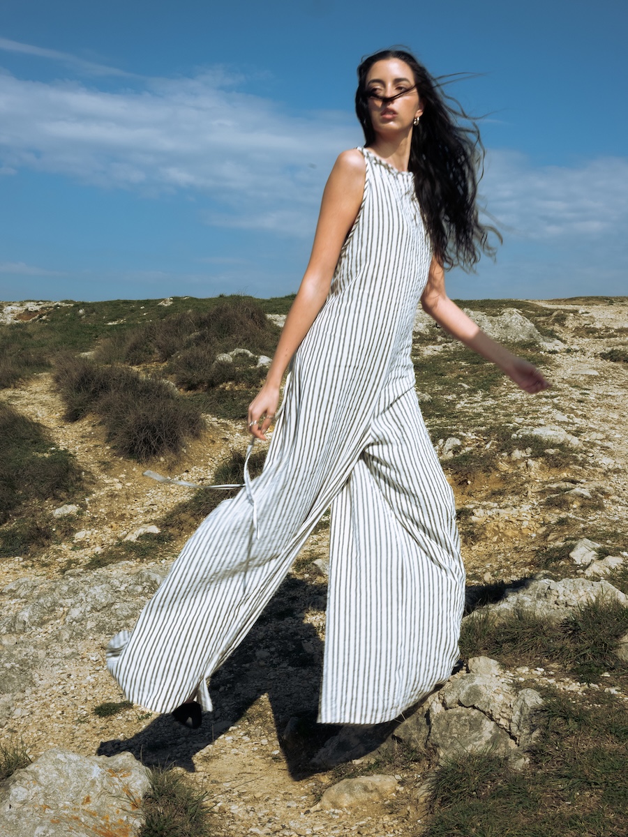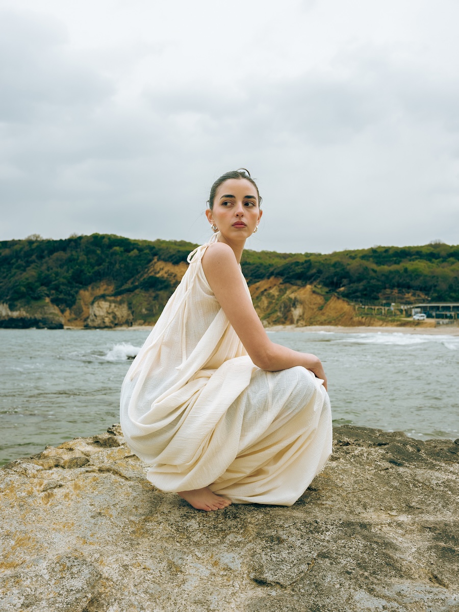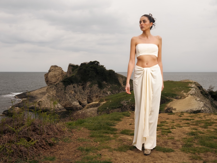 The photographic series offers a conceptual editorial interpretation of the fabric’s story. Each image connects the textile with its geographical and cultural origins, highlighting its relationship with the landscape, the sea, and local craftsmanship. The photographs were taken in various locations throughout Şile, each chosen to reflect a different aspect of the fabric’s identity: its fluidity, organic texture, and quiet strength.