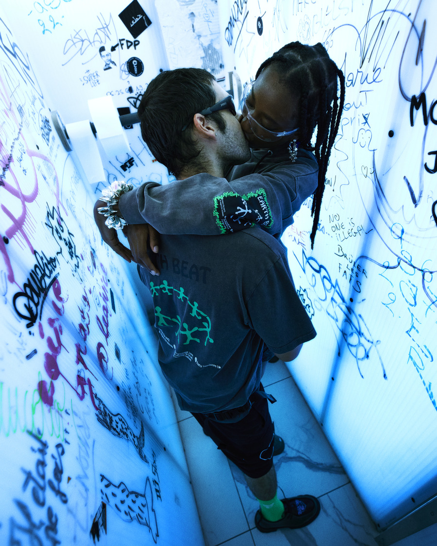The radiant collection features an array of clothing, accessories, and shoes, adorned with Carne Bollente’s iconic illustrations and Virón’s homage to the natural world’s splendor. These captivating motifs emanate an air of optimistic freedom, echoing the dreams of the youth and a profound interconnection with the cosmos.