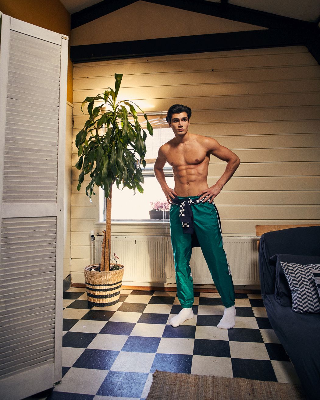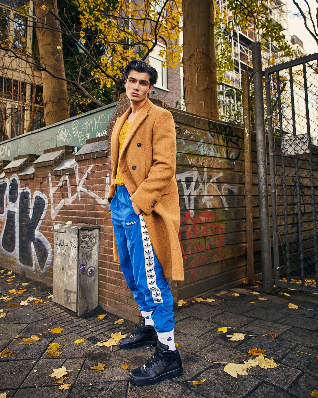 A KALTBLUT exclusive menswear editorial. Photography by Konrad Sachadel. Model is Sulumbek C signed at Brooks Modeling Agency. Styling by Kenny Vogelaar. Hair and Make-up by Eldridge Mullenhof. “The style of the shoot is inspired by the street style of the 80’s in which tracksuits and joggers were a big deal and by today’s millennials who are bold in their style and don’t shy away for a female crewneck. We left the dookie chains and chokers out and tried to give it a more modern twist.”