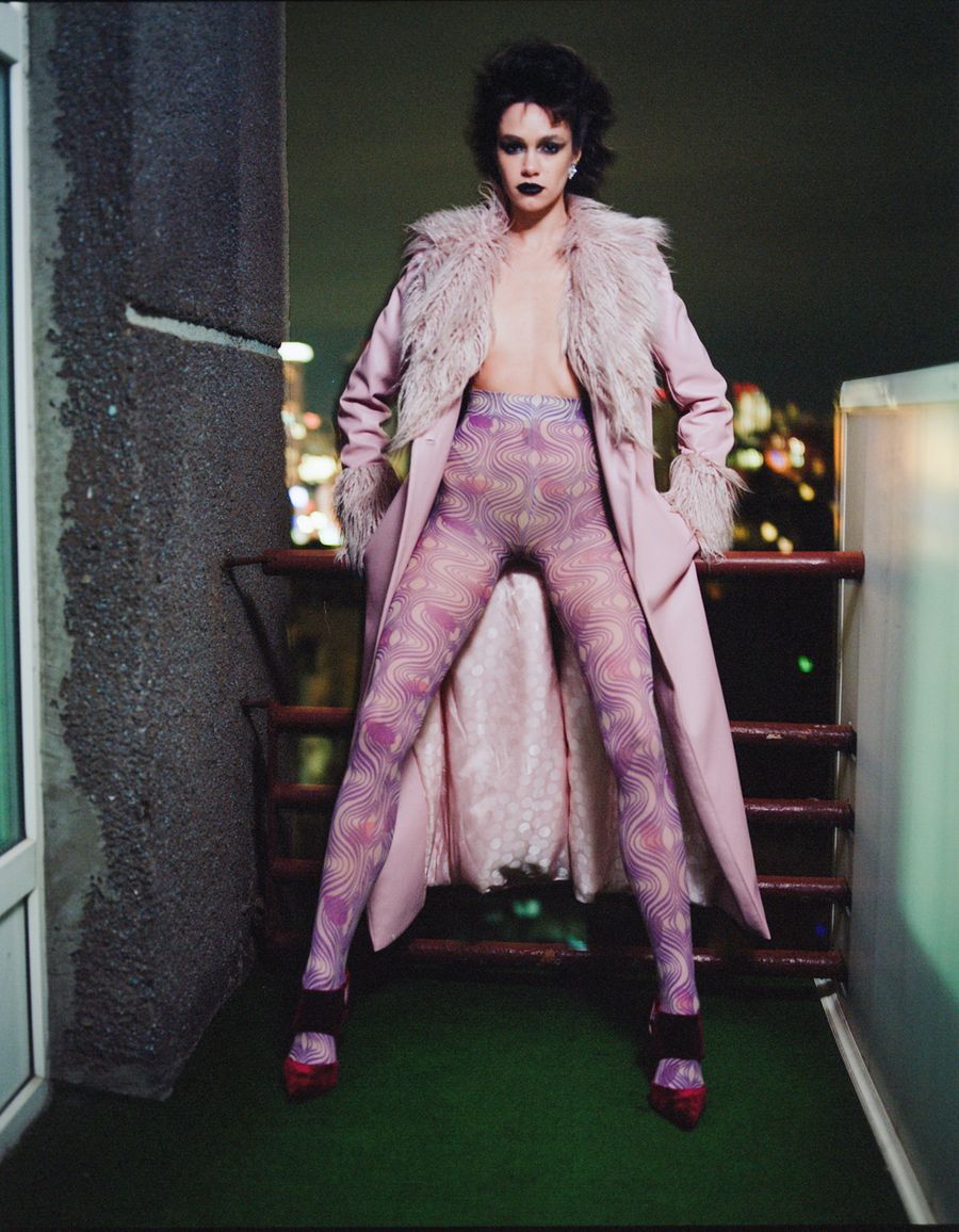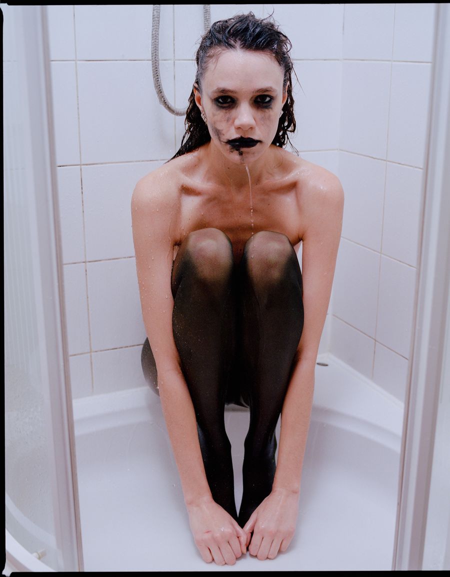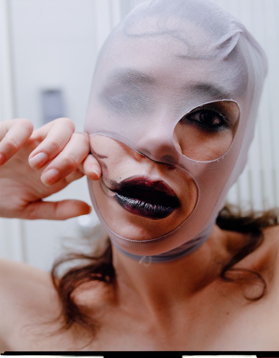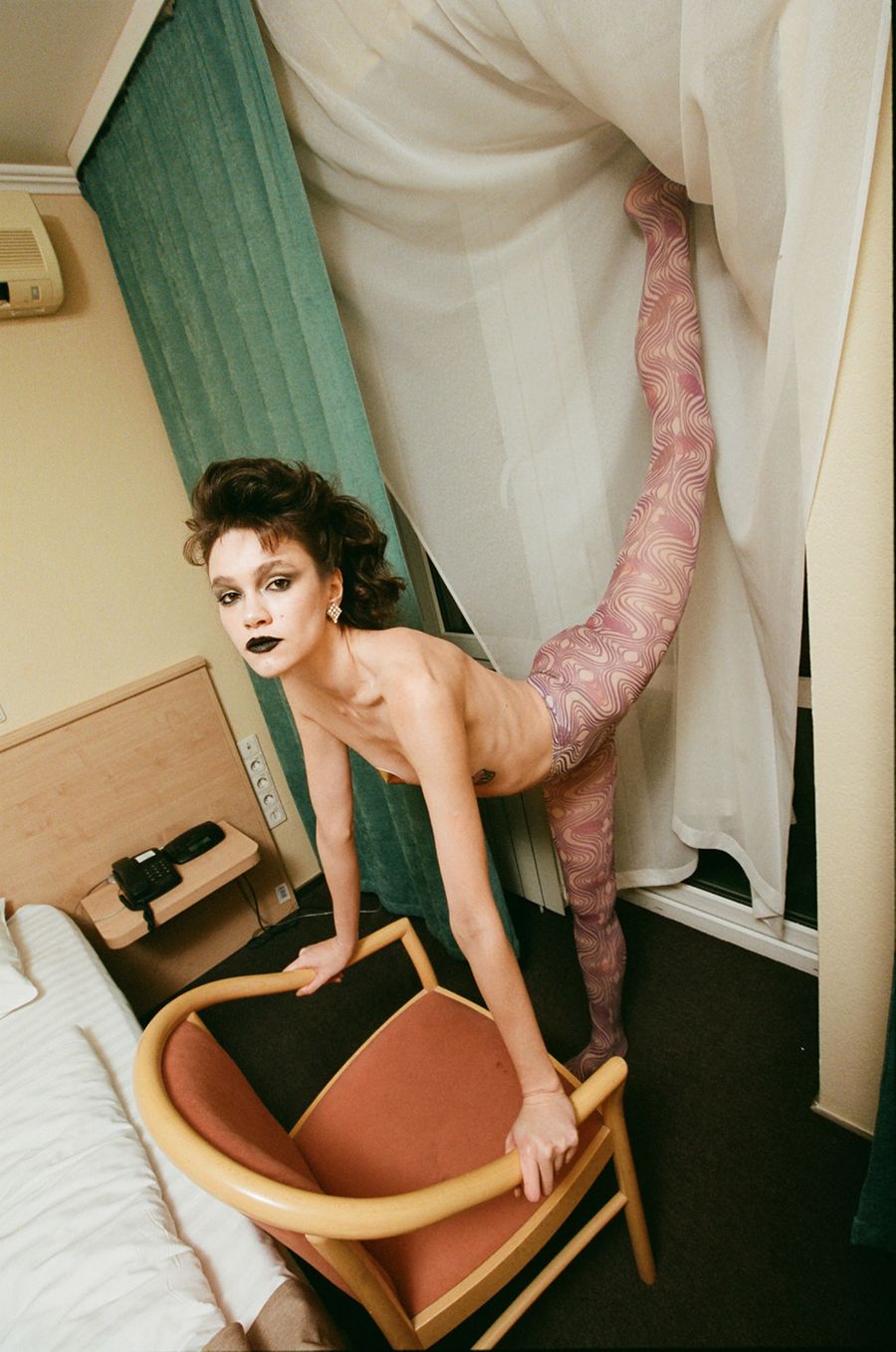 A KALTBLUT exclusive. Photography by Artem Nadyozhin. The model is Sasha Kugat . Fashion styling by Varvara Barto. Make up artist is Dasha Taivas. Hair styling by Yevgeniya Kozlova. Brands used are Bibliotheque, 2WB, To be gloves, Wolford, and Casadei.