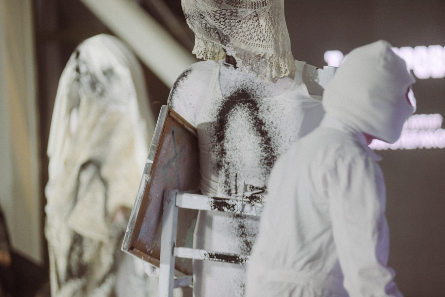 The final element of the performance was Dushan using these ‘live sculptures’ as 3D canvases to create the type of art he normally does in 2D. Using classic graffiti techniques to produce abstract art.