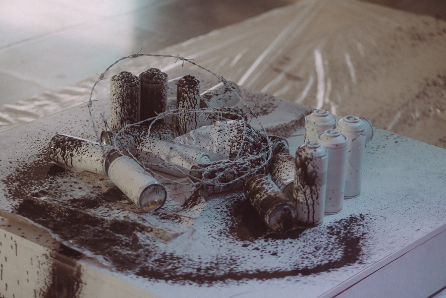 The final element of the performance was Dushan using these ‘live sculptures’ as 3D canvases to create the type of art he normally does in 2D. Using classic graffiti techniques to produce abstract art.