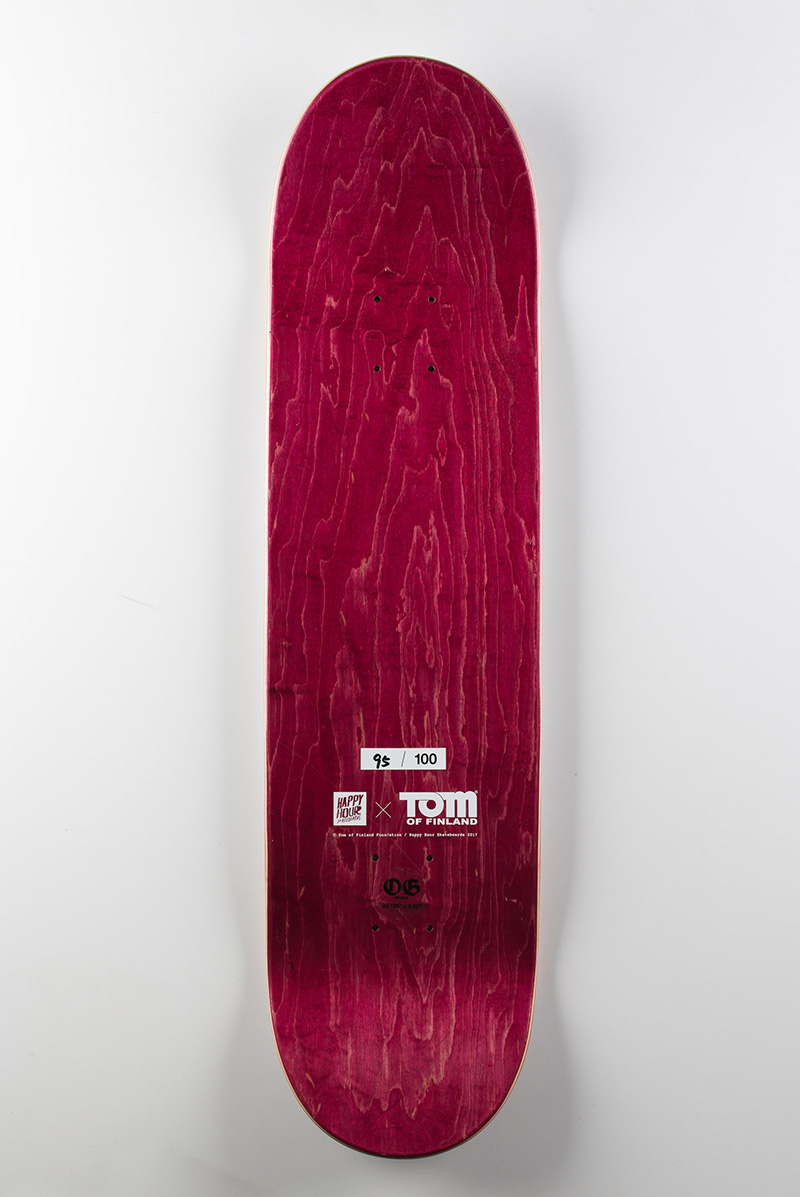 HAPPY HOUR SKATEBOARDS ANNOUNCES 2ND COLLABORATION WITH GAY ICON TOM OF FINLAND’S FOUNDATION.The new skateboard decks by Happy Hour Skateboards feature two original drawings by Tom Of Finland (Touko Laaksonen, Finnish, 1920-1991). With the collaboration Happy Hour Skateboards wants to continue to honor Tom’s legacy, as well as support diversity within skateboarding. tomoffinlandstore.com