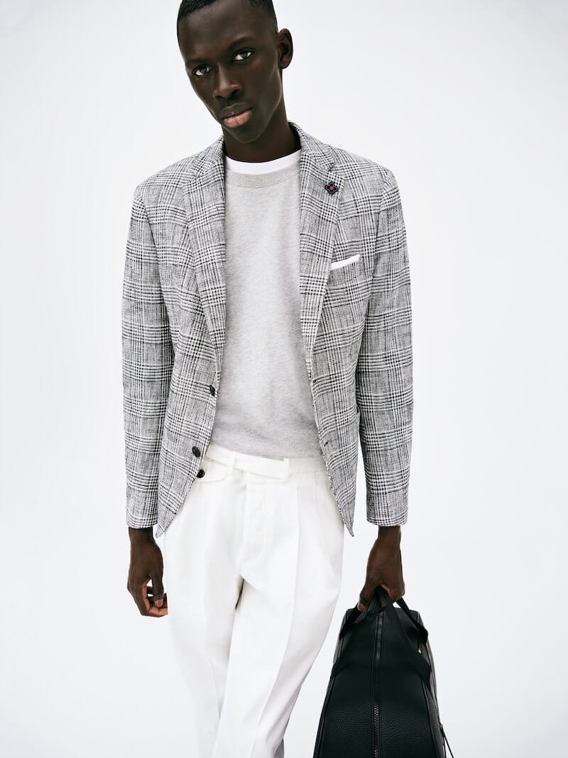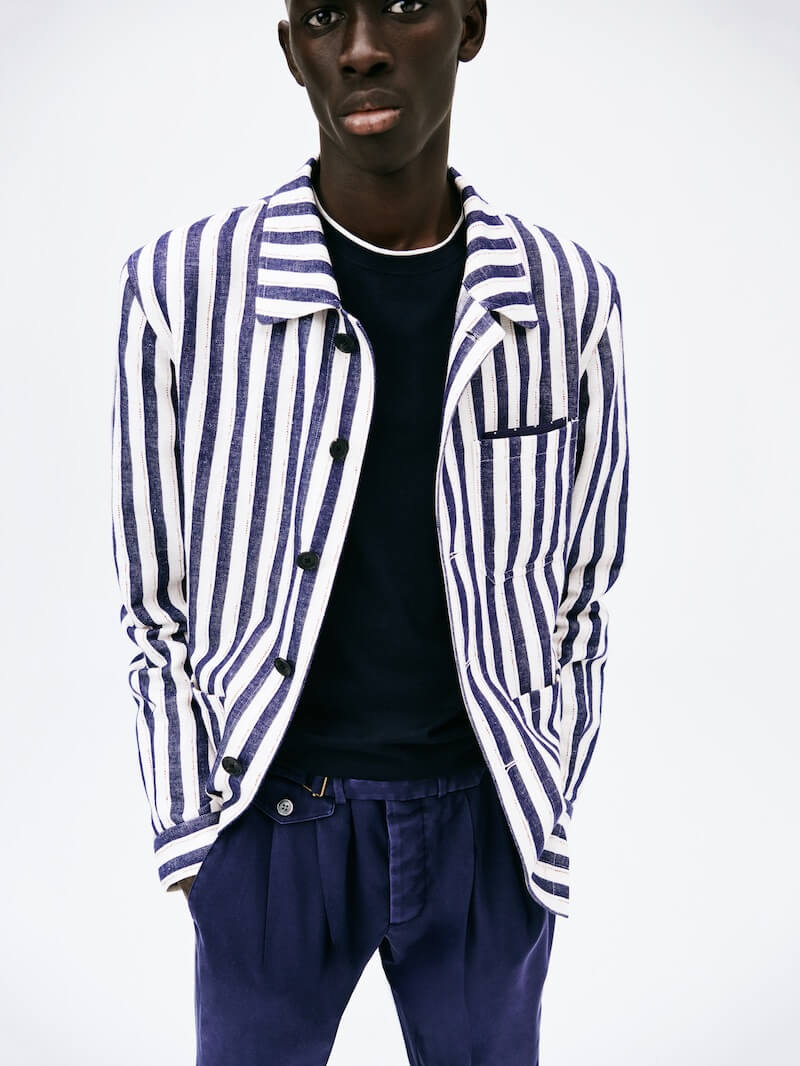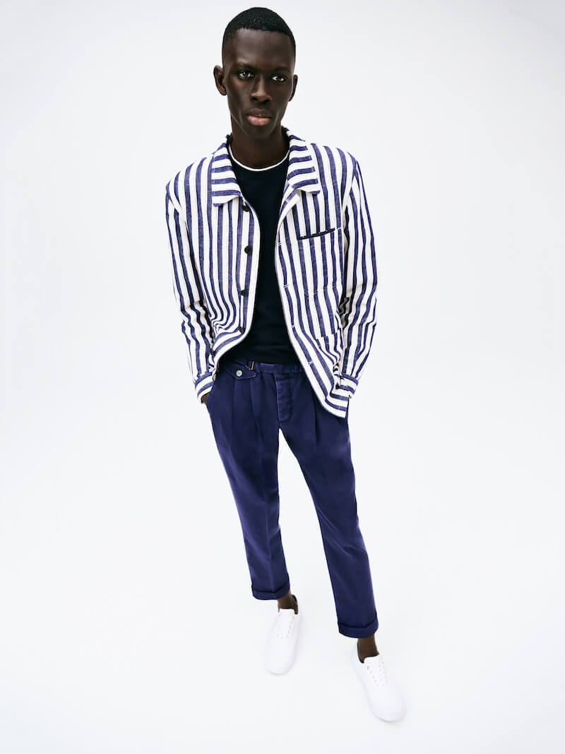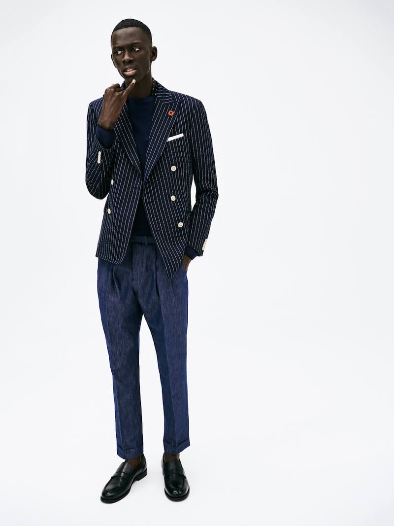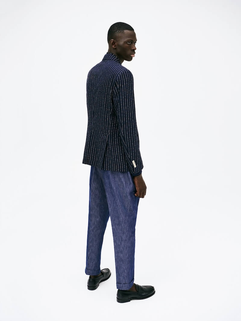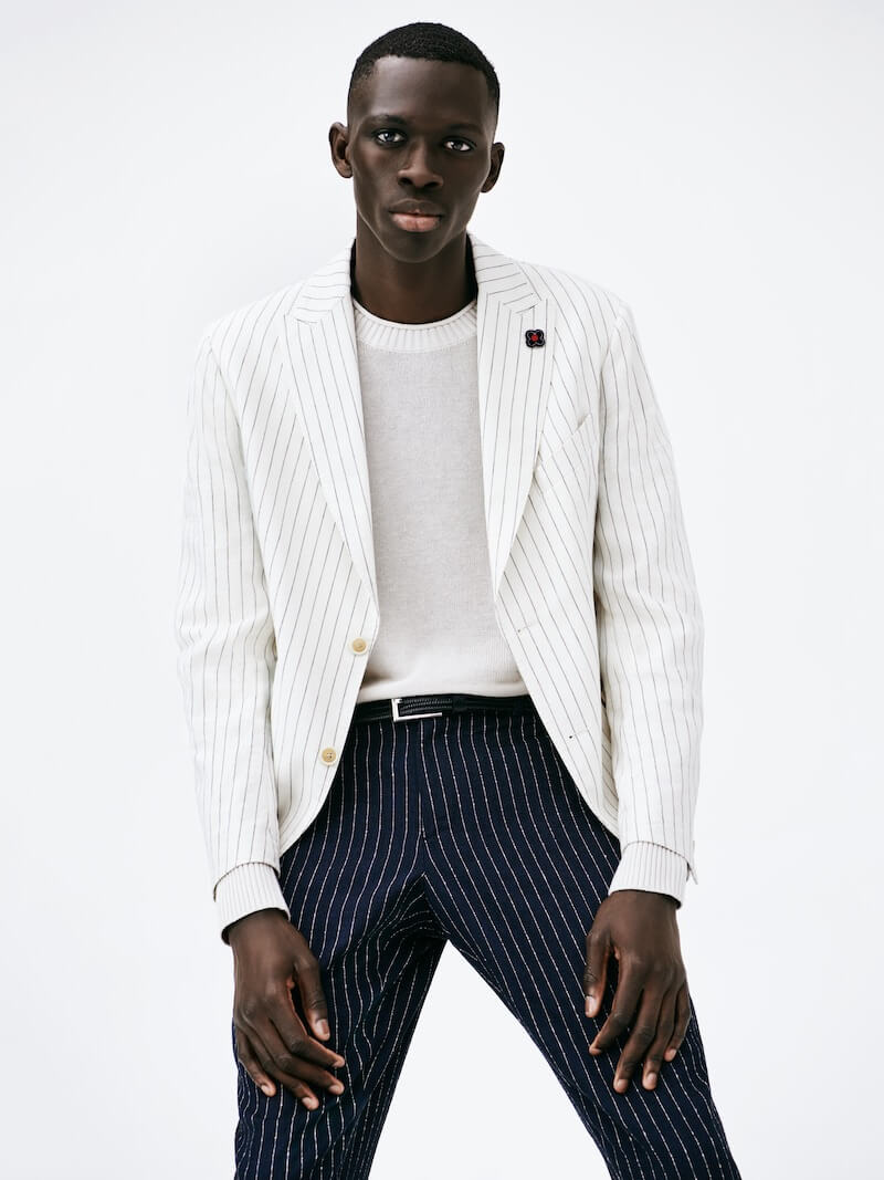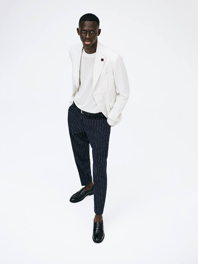 A reimagined fit range keeps a strong focus on soft and unconstructed workmanship. Unique stripe variations make their debut, from refined and elevated pinstripes to contrast 3D stripes and bold, denim optic block stripes. The collection is made exclusively from the high-quality fabrics of Italian weavers, including summery cotton denim, linen blends and luxury essentials in fine wool and wool blends.