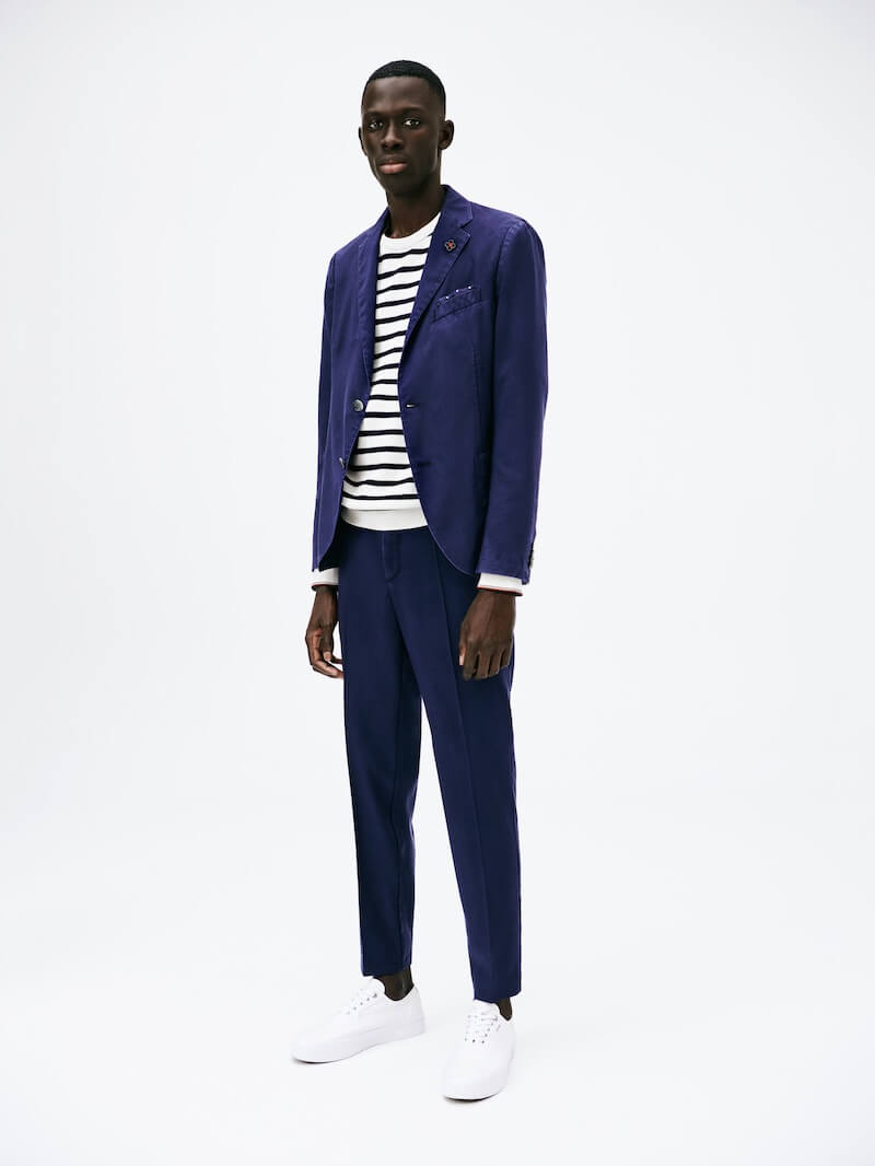 Unconstructed, unlined, garment-dyed blazers and matching pants feature lightweight and natural TH Flex technology. Refined details run throughout the range, from Horn-inspired and mother-of-pearl buttons to the eye-catching lapel pin on every blazer featuring the signature TOMMY HILFIGER flag logo fused with the timeless Lardini flower.