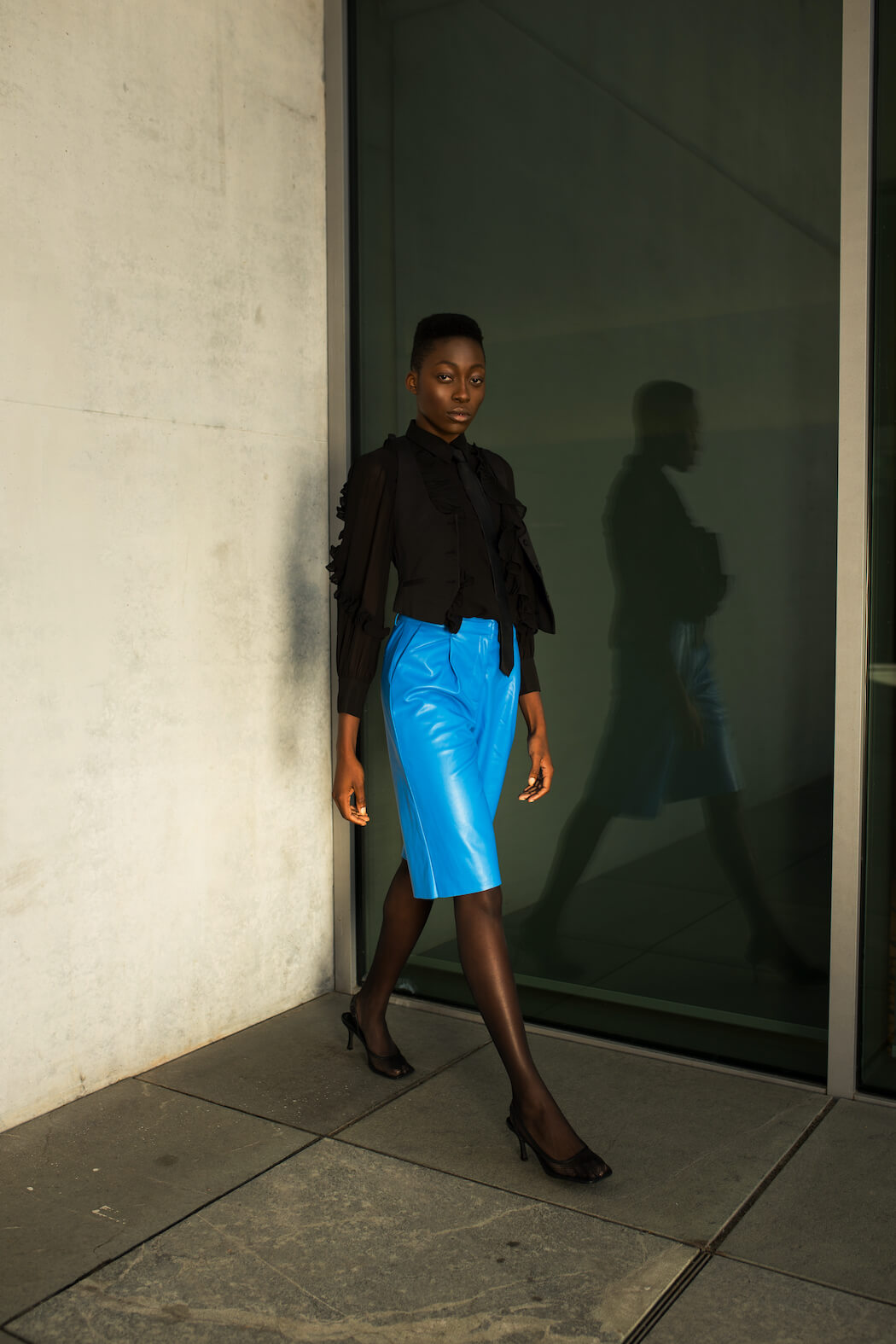 A KALTBLUT exclusive. Photography by Elena Prenaj. Model is Toni Dreher signed at Agency Two Management. Make Up & Hair by Lisa Lankes. Styling by Johanna Rill using ZARA, COS, ARKET, Maria Black, Mango, Who What Wear, Hudson, Z Code Z, Seidensticker, Manguun, Asos Design, Vero Moda, Tiger of Sweden.