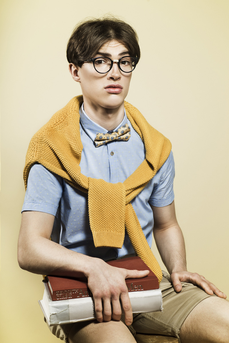The Geek: Shirt – Ted Baker, Bow tie – Ted Baker, Knitted Sweater & shorts – Topman, Glasses – Moncler