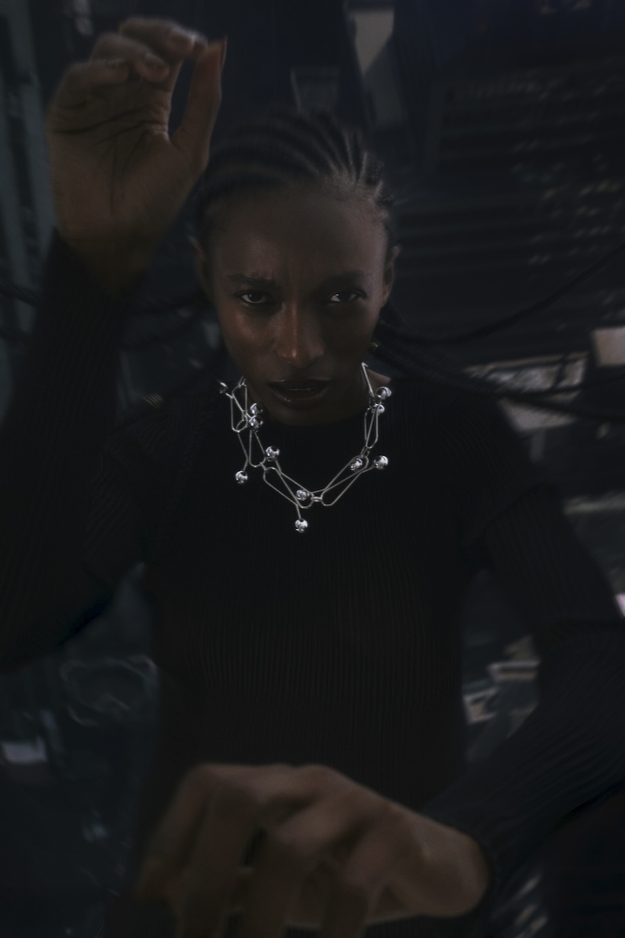 The editorial questions that thin line between reality and simulation, exploring the tension between the tangible and the ethereal, the physical and the illusory. Nath (the model) becomes a figure within this altered perception system, moving through programmed-like lights and shadows, reflections that fragment her presence, textures that invite doubt. Where does the body end and the projection begin? What is an image if not a reinterpreted version of what we believe we see?
