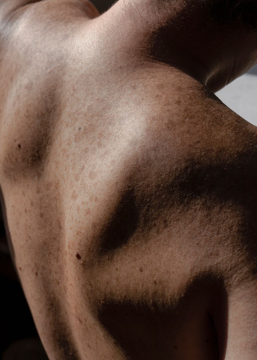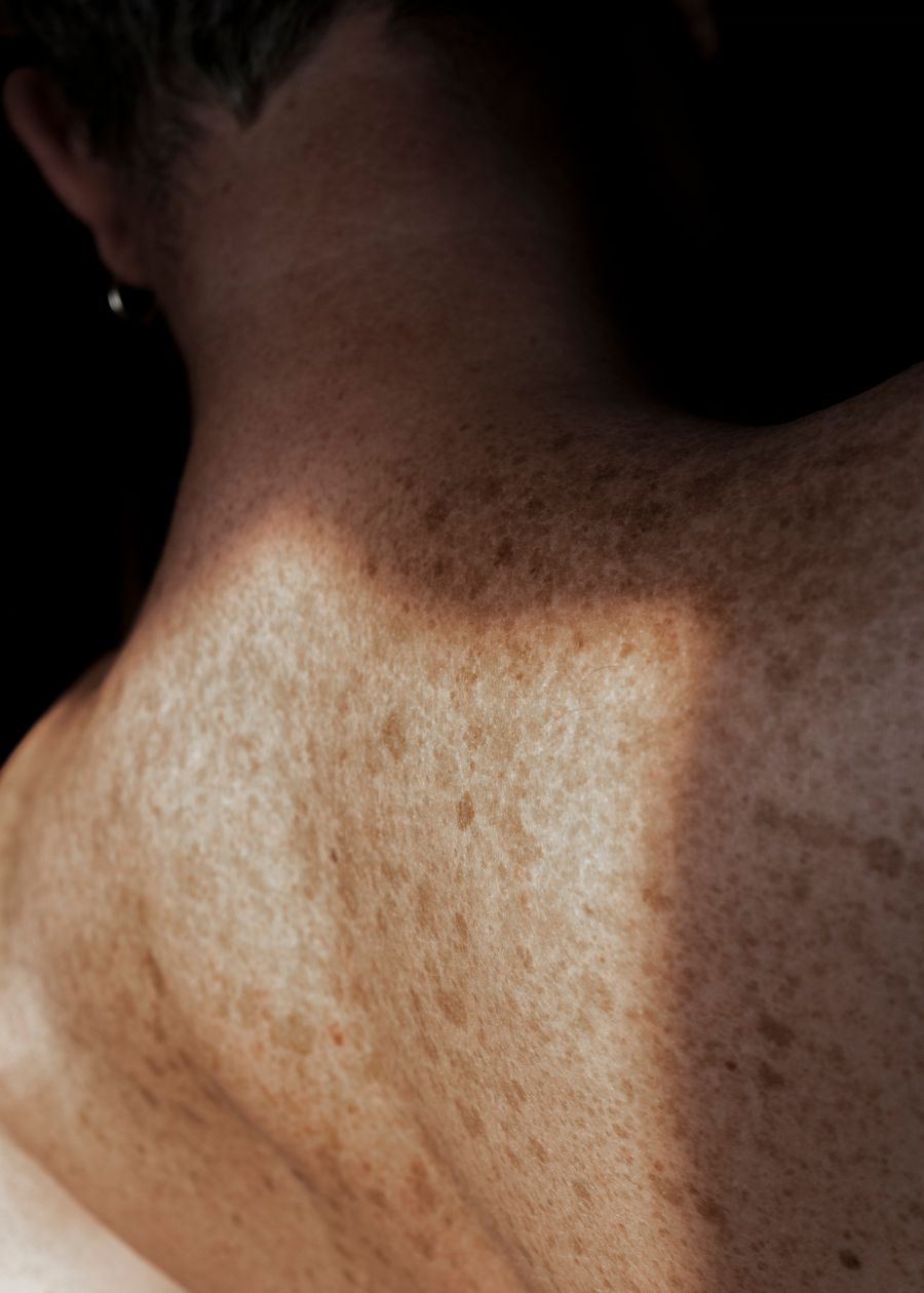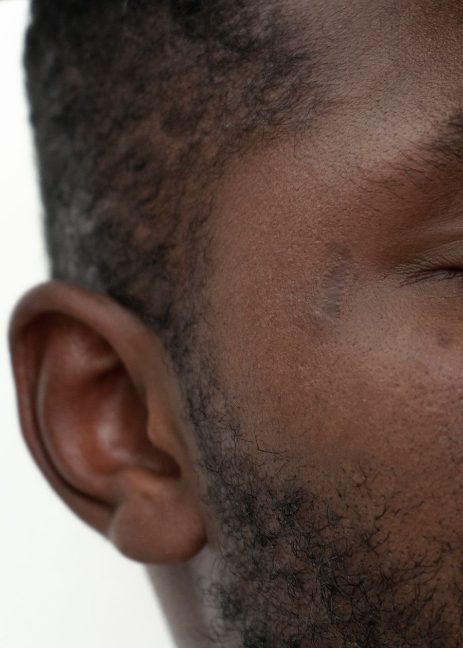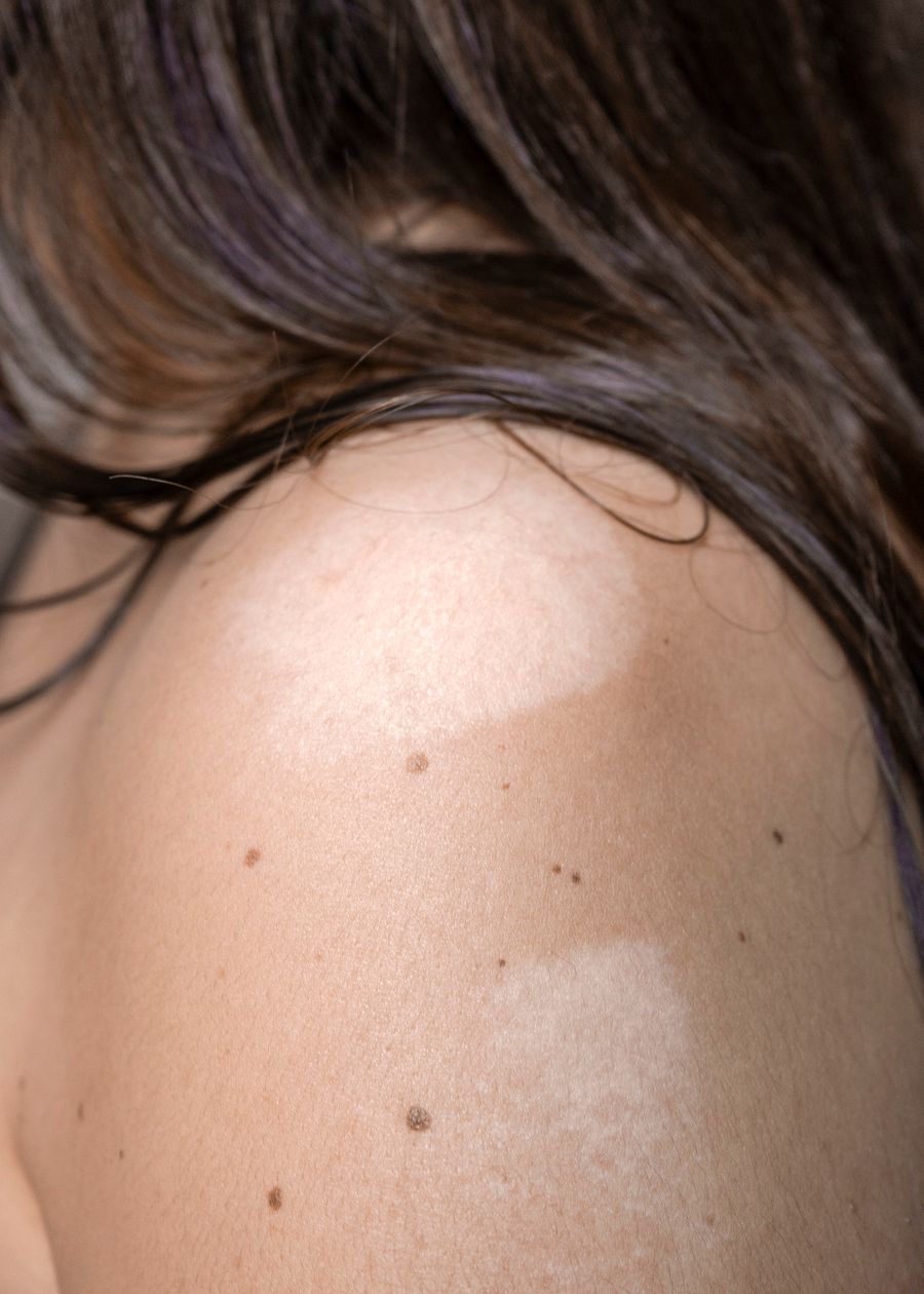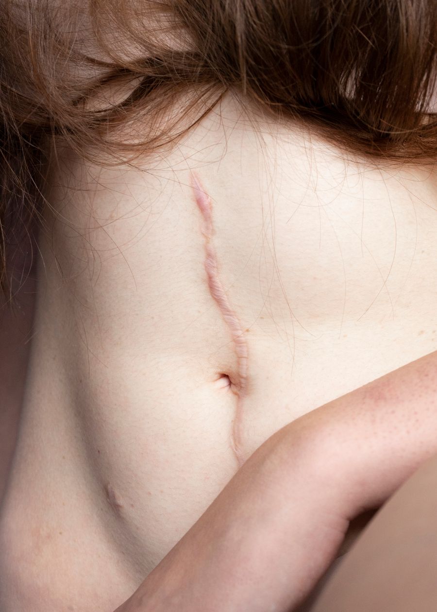 “Traces aims to explore our surface, emphasising the particularity of the signs or traces on our skin from birth or developed later. This series represents a turning point in the perception of my skin after a fungal infection on my face.