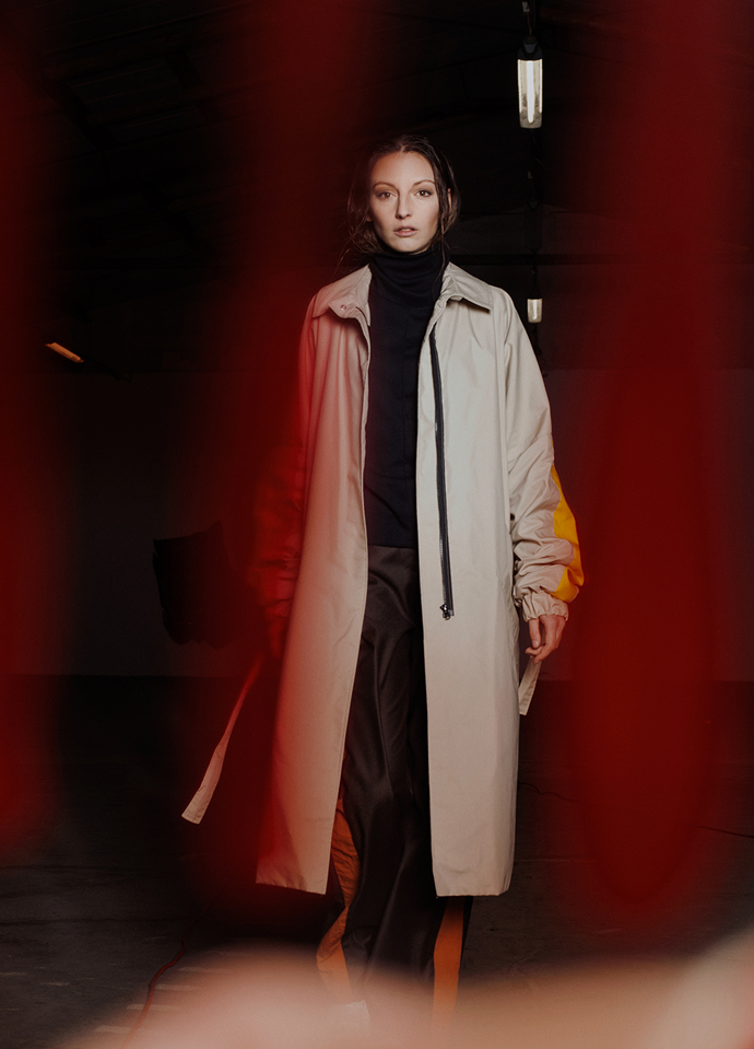 A KALTBLUT exclusive womenswear editorial. Photography by Fashionhorses. Model is Malin Altena signed at Modelwerk. Make up by Jule Konrad. Fashion Collection “Traverse” by Lukas Viering & Marcel Mentzel. “FASHIONHORSES could be defined as a studio, but the work that we do goes beyond a label. We like to see it as two women that have very different perspectives which combined found a common ground when it comes to producing and integrating many forms of visual expressions. Our almost 10 years experience with each other began at the Bauhaus-Universität Weimar and is reflected in our photography, editorial design, installations and styling. A polarity that is unified by one simple element: DEVELOP WORK WITH STRONG PERSONALITY.”