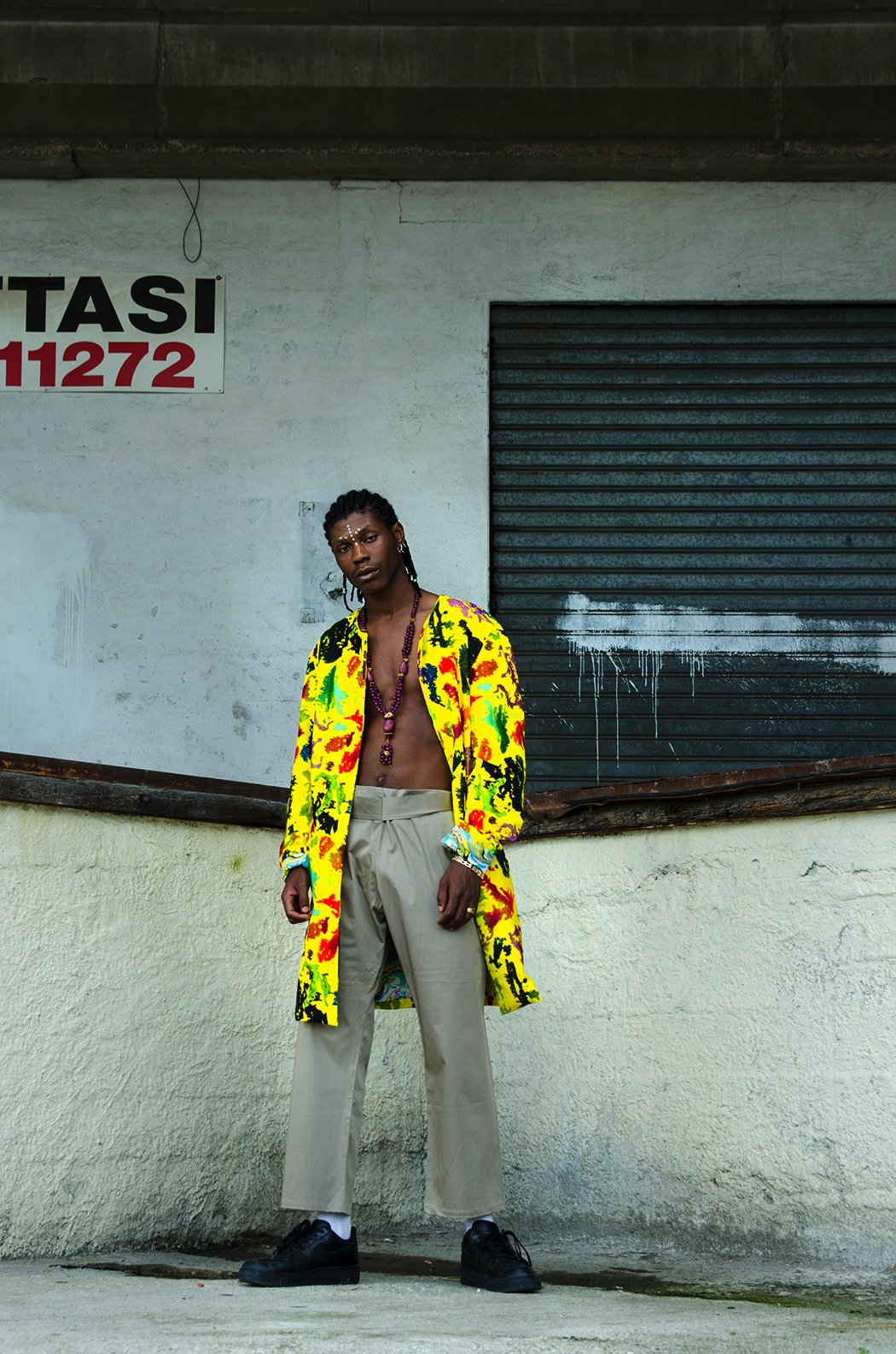 A KALTBLUT exclusive menswear editorial. Photography by Laura Magagna. All fashion by Mateusz Jakubczak. Model is Paul Baah at Agency Maba. Make up by Marta Picone. Styling by Luna Marcolini. Producer Federica Iaiza.