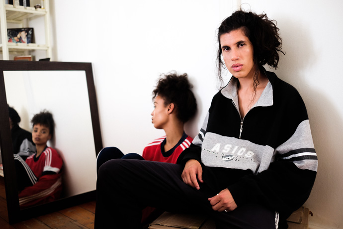 A KALTBLUT exclusive editorial. Photography by Hana Sho. Models are Buck Whaley signed at My Friend Ned and Qiniso Van Damme at My Friend Ned. Make-up by Qiniso Van Damme. All garments were sourced from Vintage and The City. “This editorial, with garments sourced from Cape Town-based vintage store, Vintage and the City, was inspired by the concept of movement. The editorial was captured by local photographer, Hana Jayne Sho, with styling and creative direction by myself, Buck Whaley. When conceptualising this shoot, I drew inspiration from the boxes in my bedroom, of which were there due to the fact that I was moving house. In order to extend this idea of transition, active progression and change, I chose to style the shoot with sports luxe garments.”