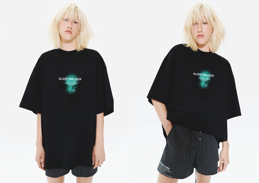 The silhouettes are exactly what you would expect from a TTSWTRS collection. A portion of the designs fit like a second skin; bodysuits, bike shorts, bra tops, and catsuits. The remaining portion is oversized; t-shirts, denim shorts and jacket sets, sweaters and hoodies. Unique styles to this collection are the Siren silk dress and Sleep Wɐlker robe.