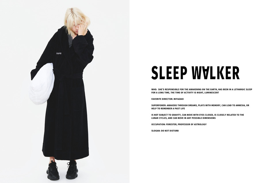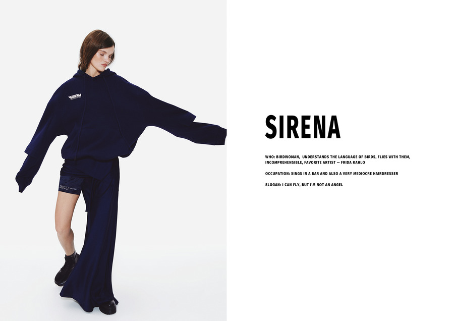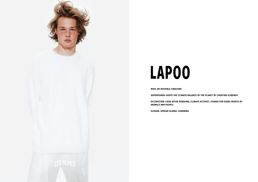 So, for example, the powerful and vigorous Siren — who is a birdwoman, knows how to fly and understands the language of birds. She is self-confident and wears a mini jumpsuit that does not restrict her movements or a flowing slip-dress that is asymmetrical and emphasizes the playfulness of her personality. Or Lapoo who spends his time helping penguins and trying to prevent global warming. In the collection, there’s also Tereza who represents infinite generosity towards others. Her community sees her as nurturing and warm, a bright light in a sea of darkness. Her warmth is disarming, if you look into her eyes, your anger will be replaced with appreciation, and your hate will be replaced with love.