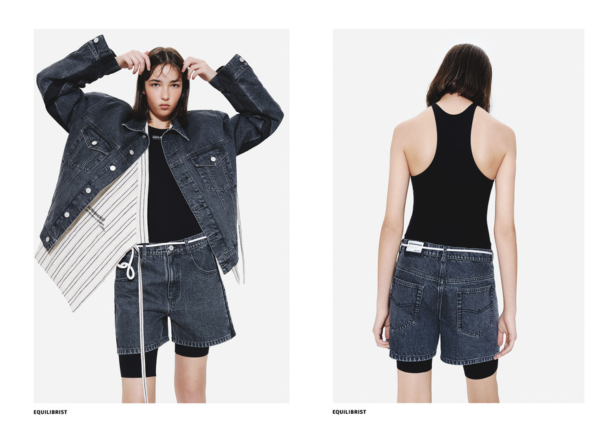 The colour range of the collection is uplifting and light; there’s mint green, baby blue and pink with a pop of tangerine orange — plenty of bright white as well. There are shades of denim in white, light blue, and faded black.