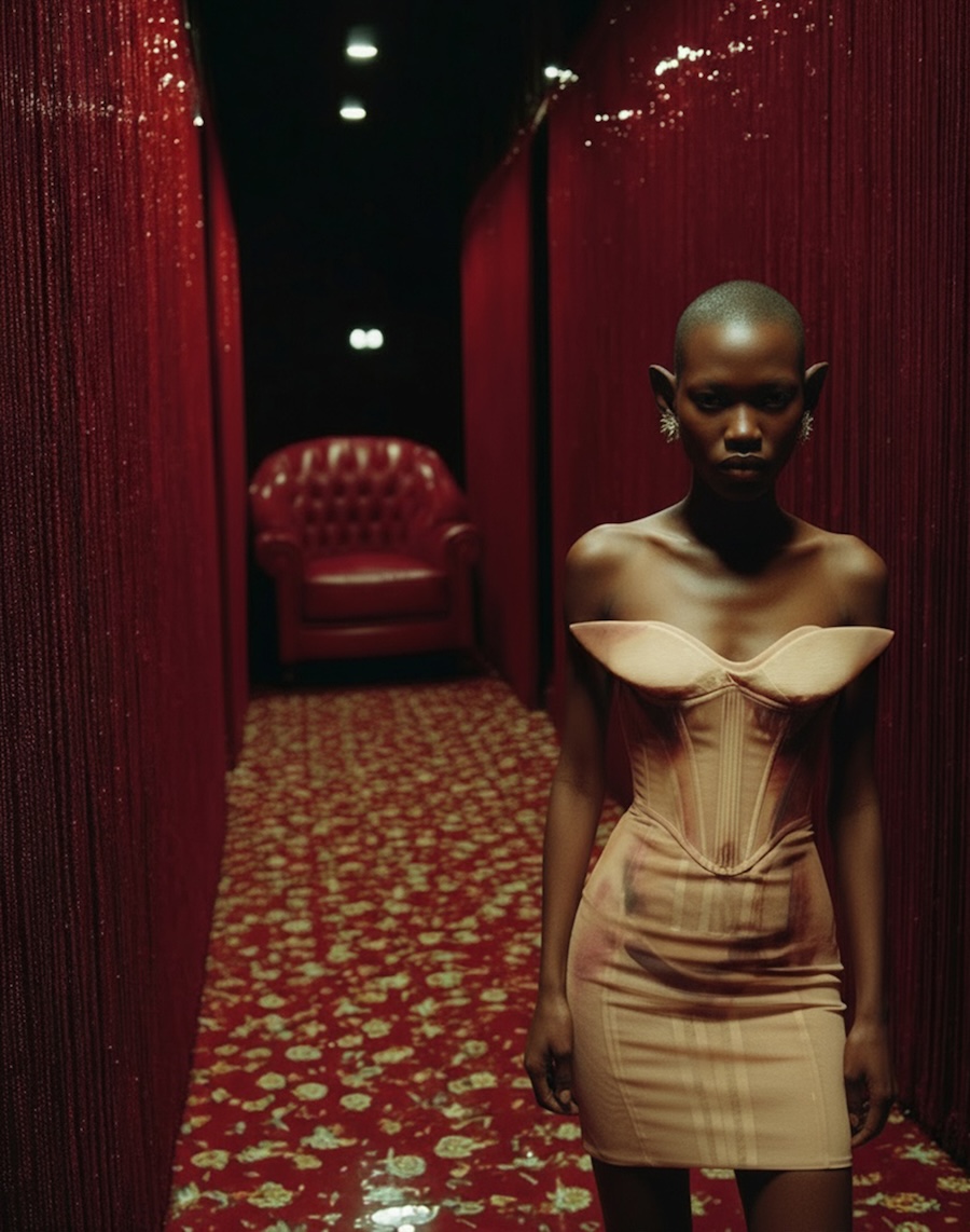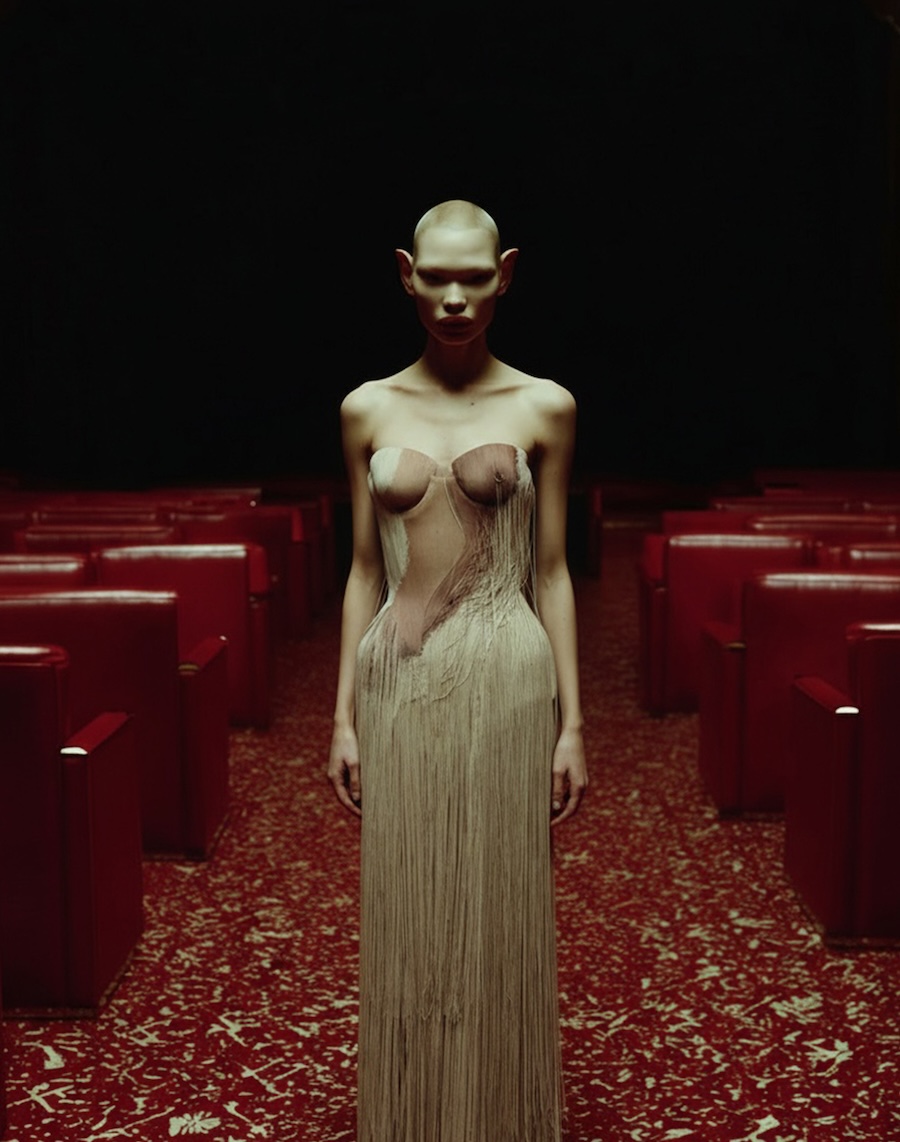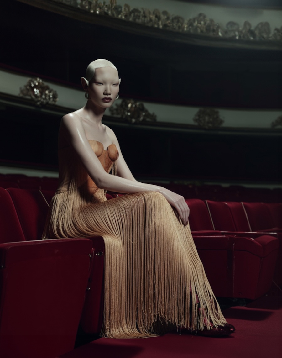 The collection features body-hugging silhouettes that accentuate natural forms, alongside prints that mimic bare skin in their candid expression. These pieces delve into the connection between the physical and emotional dimensions of human nature, offering a fresh perspective on beauty and self-acceptance.