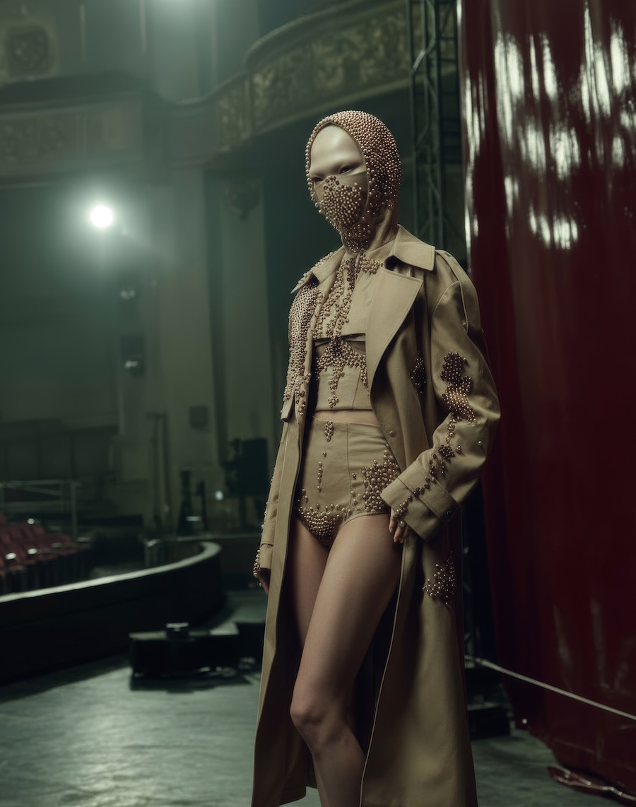 TTSWTRS’ in-house artists and art director have significantly contributed to the collection’s emotional depth, blending technical precision with raw emotion to shape its aesthetic. They collaborated with theatrical costume designer Nazar Didyk, who introduced innovative materials and techniques, enhancing the collection’s tactile contrasts and performative qualities.