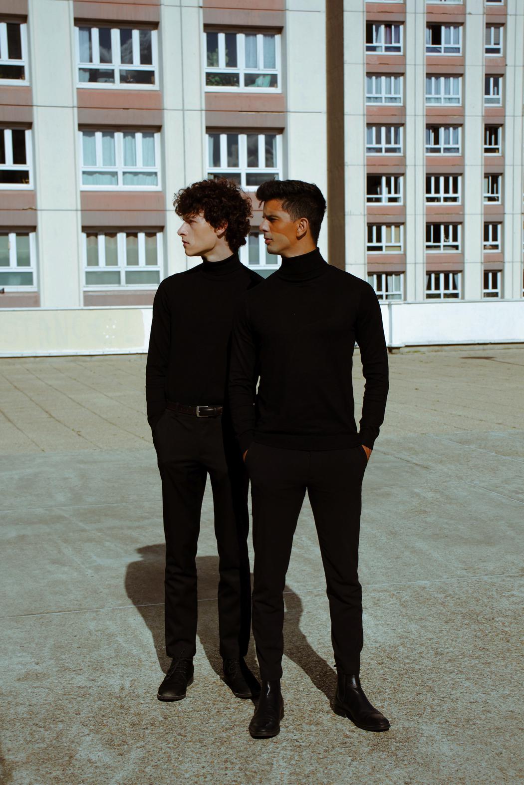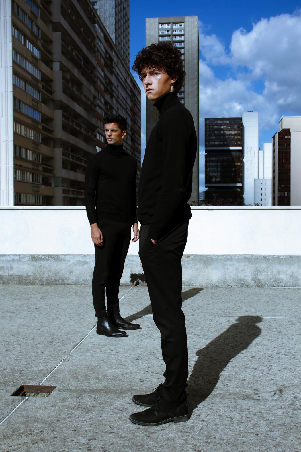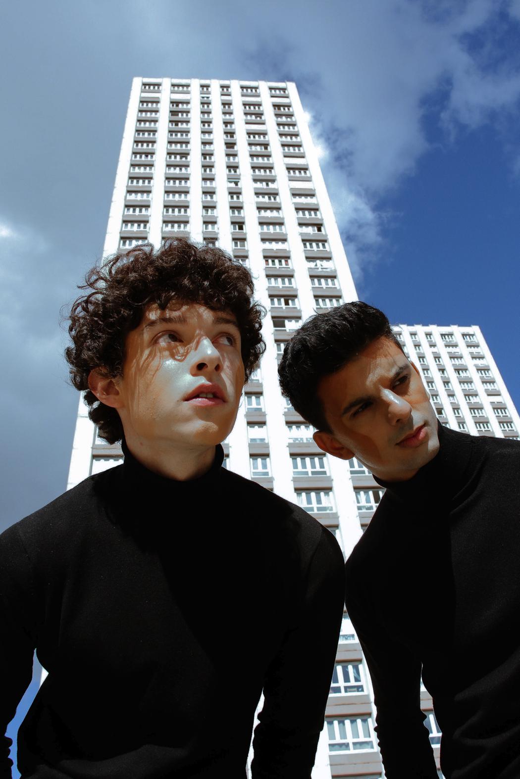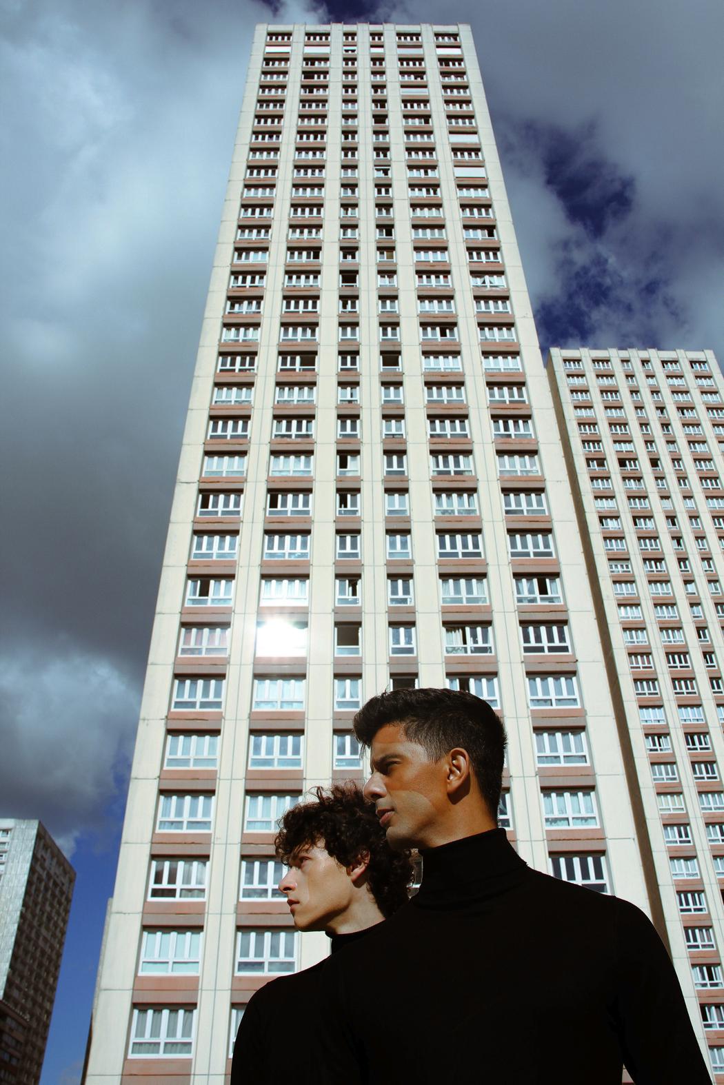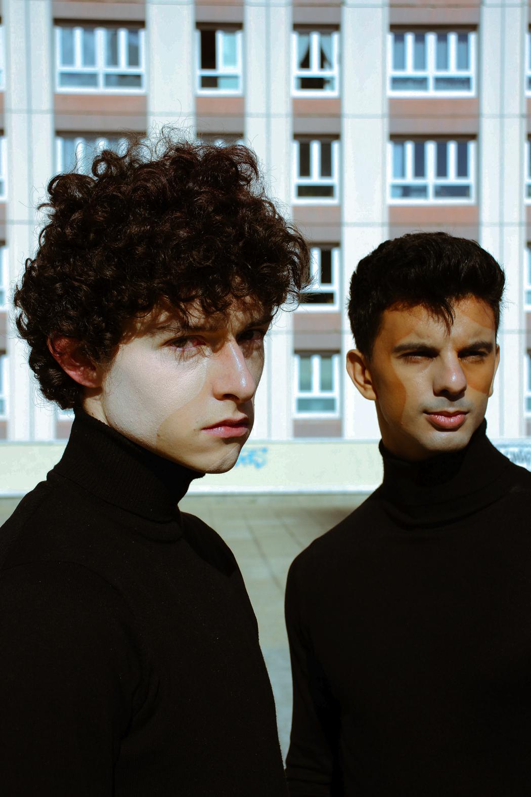 “The geometry of their positions put forward the harmony of two souls. The buildings and the makeup create an industrial illusion, of two persons that were built and couldn’t exist without each other. They work together the same way as if you removed a spike from a building, it would fall down.”