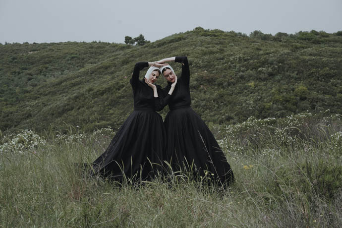 Maria Kokkinou is a photographer based in Athens. Kokkinou is fascinated by the world of fashion photography as seen by a more artistic view. She likes experimenting with forms and shapes, trying to combine odd parts in order to create a whole. This has lead her into creating her last project entitled “Twins” in collaboration with two very creative spirits Stella Panagopoulou and Valisia Gotsi the owners of the fashion brand 2WO+1NE=2 who created these beautiful dresses especially for the photo shooting.