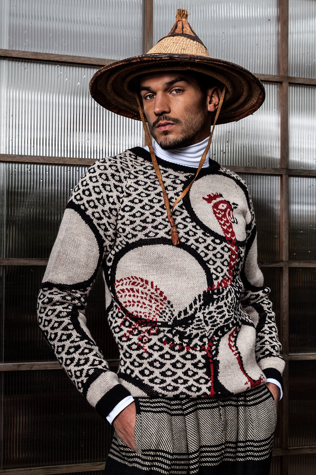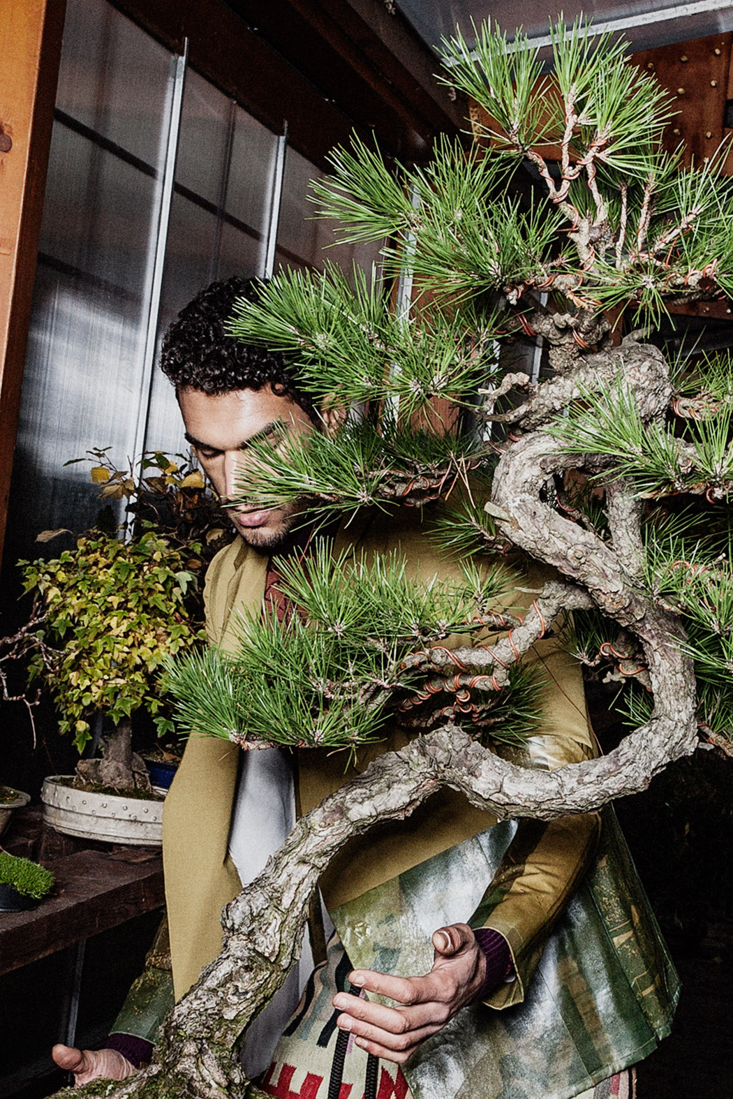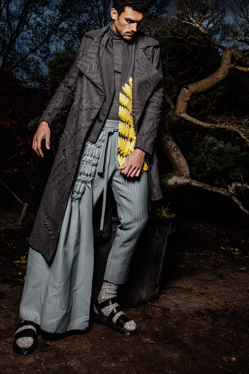 A KALTBLUT exclusive menswear editorial. Photography by Tatchatrin Choeychom. Model is Robin Pijls signed at Republic Men. Styling by Julieta Piacenza Vanderhoeven. Hair and make up by Lily Yeh. Location by Deshima Bonsai Studio. Fashion by Boaz van Doornik, Joosje Were, Gino Anthonisse, Johanna Bas Backer and Weekday.
