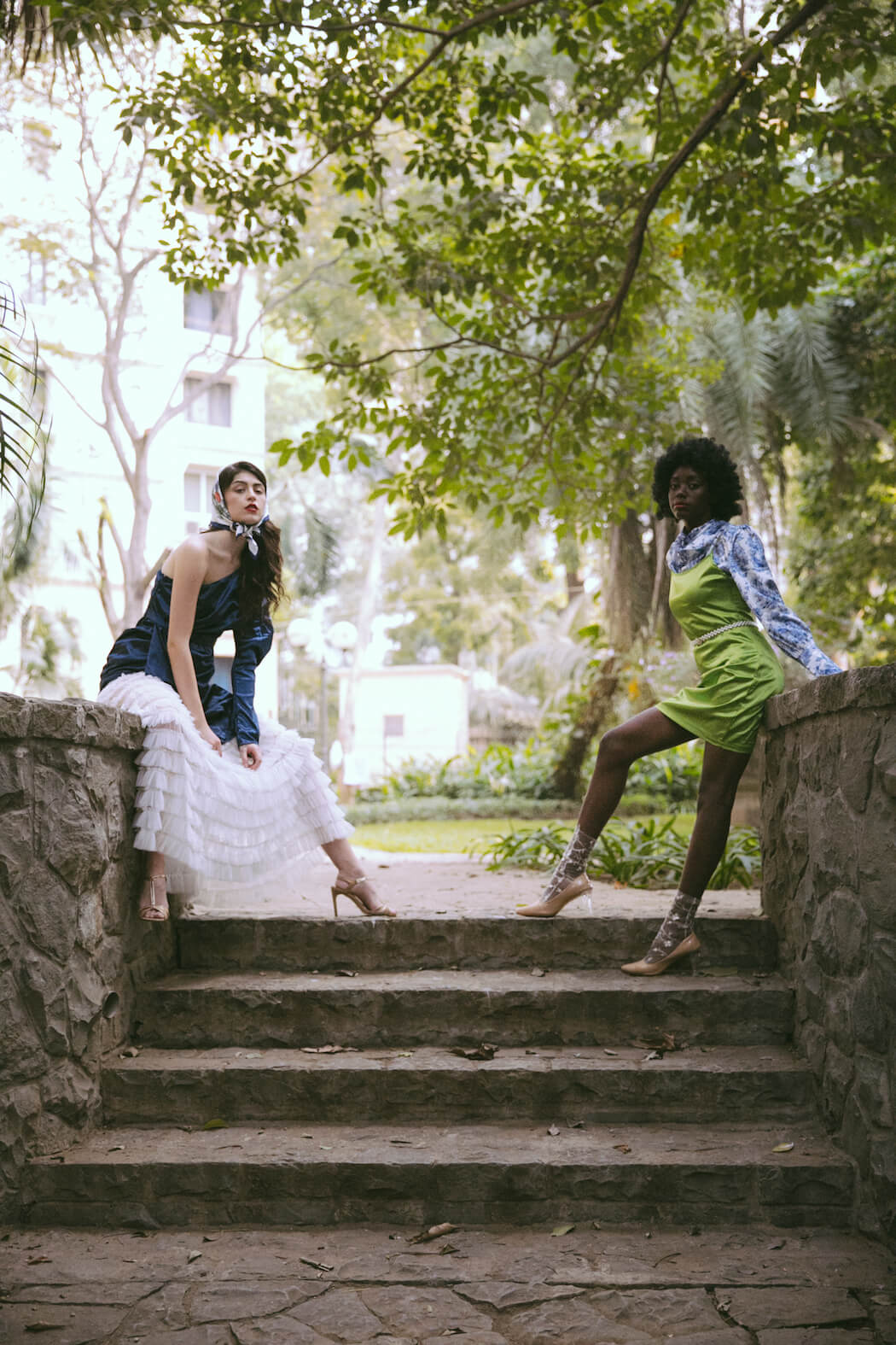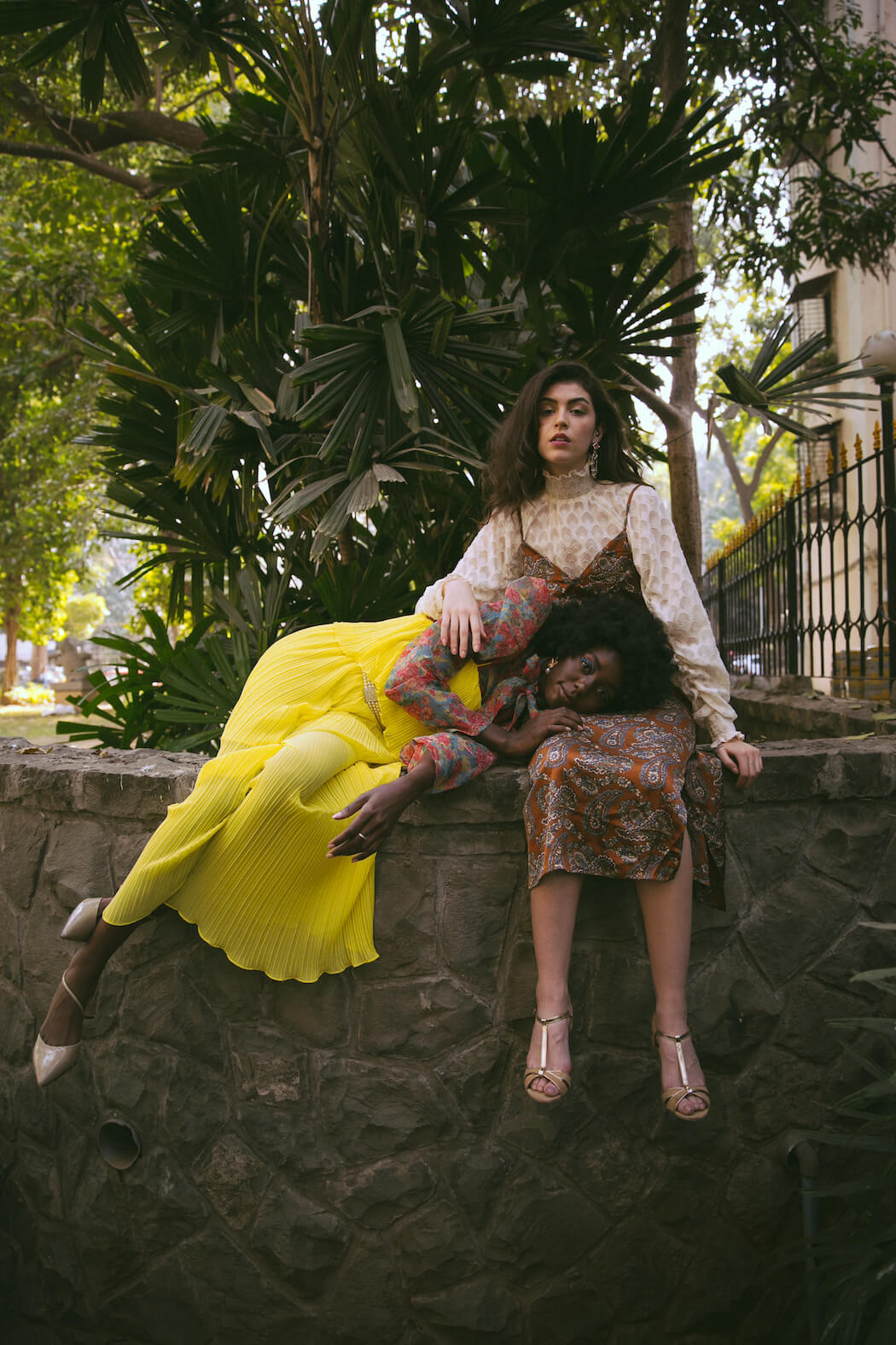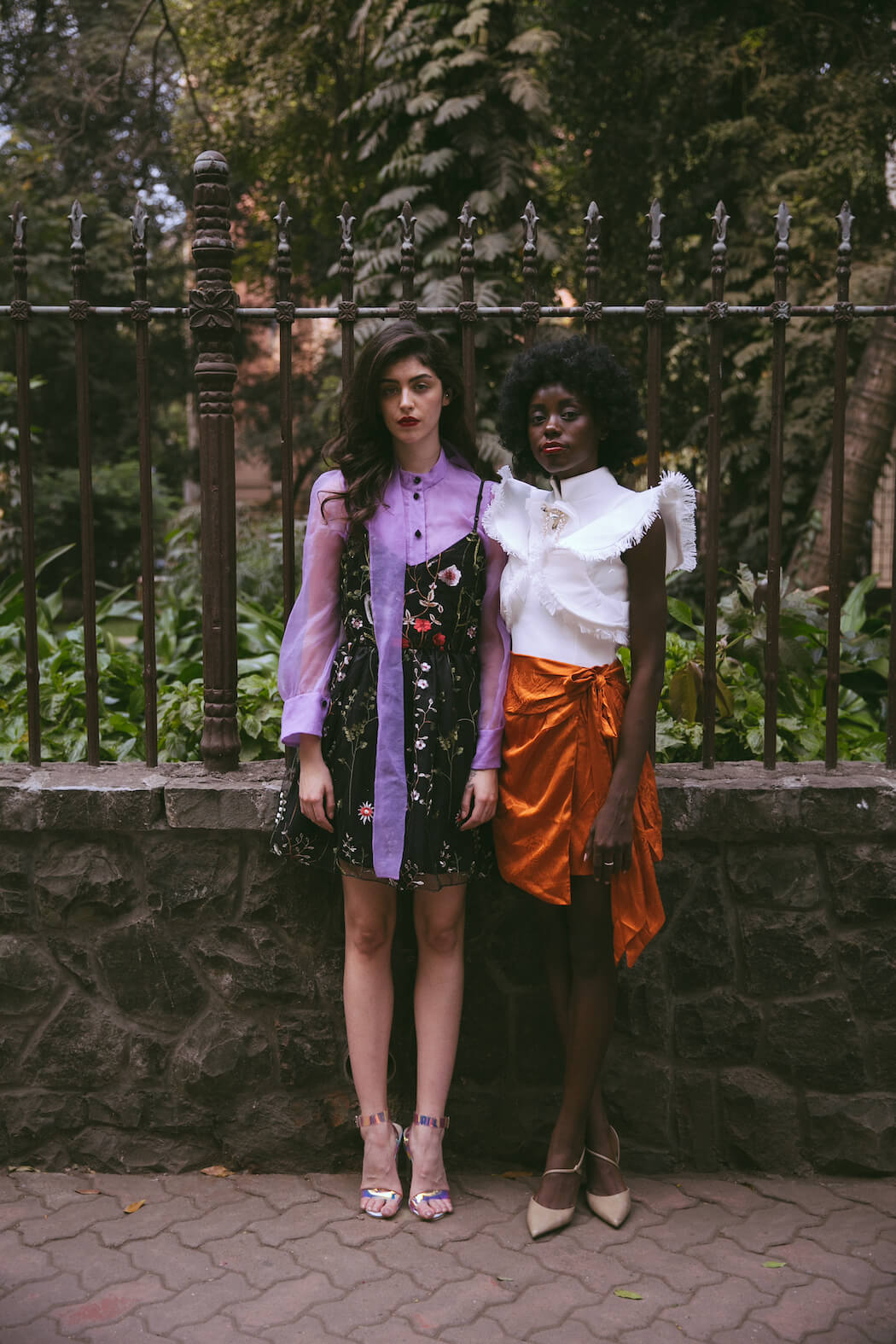 A KALTBLUT exclusive. Photography by Mihir Jaideep Thakkar. Models are Dolce Oliver & Lita Flores Garcia signed at URBN Models GmbH. Styled by Kalyani Adhav. Makeup by Neha Parmar. Hair styled by Kinjal Garg. Brands are Giambattista Valli x HM dress, The Source boots, Zara, Kocktail, Stradivarius, Pinkcow dresses, Preselia, Daya, Steve Madden, Mango, Dura, Anna Klein, Brase, Reformation, The Source skirt, Kazo, Garage, The Label Life, Ardene & Dollskill.