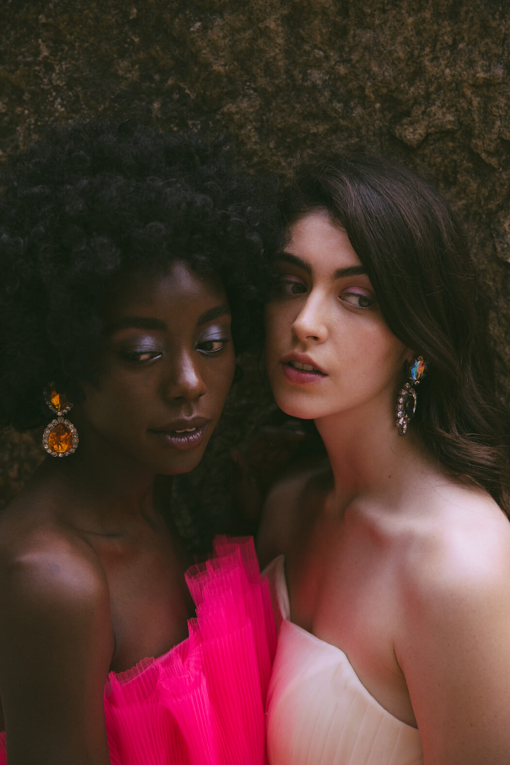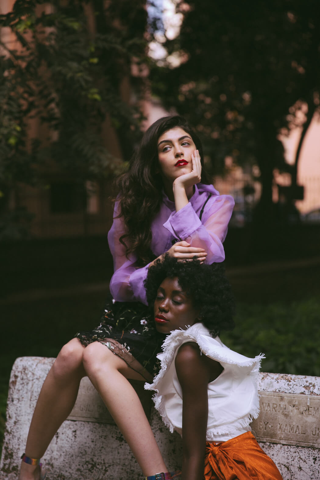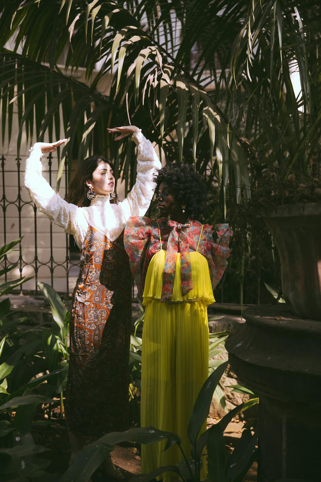A KALTBLUT exclusive. Photography by Mihir Jaideep Thakkar. Models are Dolce Oliver & Lita Flores Garcia signed at URBN Models GmbH. Styled by Kalyani Adhav. Makeup by Neha Parmar. Hair styled by Kinjal Garg. Brands are Giambattista Valli x HM dress, The Source boots, Zara, Kocktail, Stradivarius, Pinkcow dresses, Preselia, Daya, Steve Madden, Mango, Dura, Anna Klein, Brase, Reformation, The Source skirt, Kazo, Garage, The Label Life, Ardene & Dollskill.