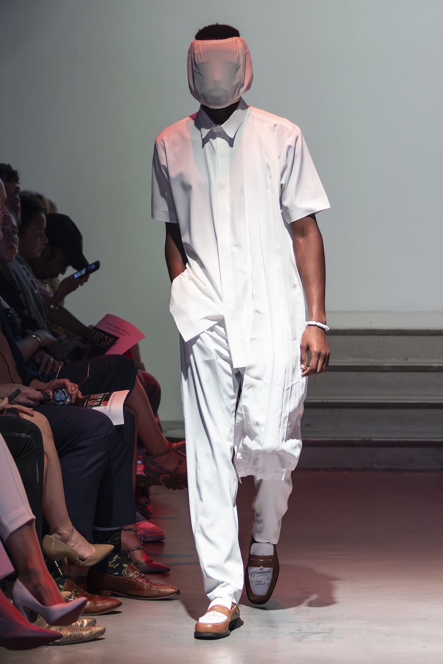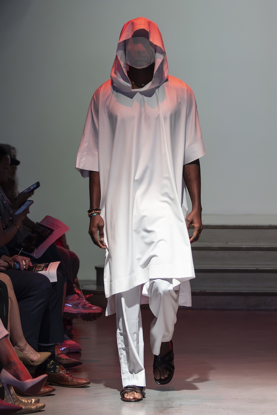 Kareem’s achievement lies in his refusal to reduce tradition to mere aesthetics. Instead, OOMO AJADI treated the runway as a sacred procession, an act of cultural storytelling where absence spoke as loudly as presence. The white fabric became more than a palette choice. It was purity, transcendence, memory. The covered faces disrupted the idea of fashion as personality, insisting instead on collective history.