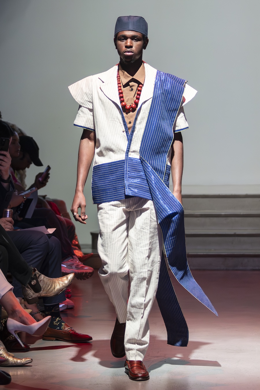 “The Five” Menswear infused with Yoruba spirituality. Each look was a quiet invocation of five orishas, balancing sleek tailoring with symbolic weight.
