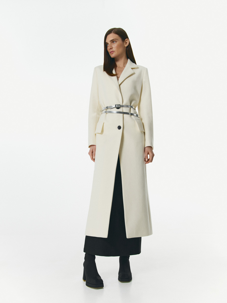 Strict, bold silhouettes and sophisticated asymmetrical draperies allude to the uncompromising nature of contemporary women. The corset basis of numerous garments in the collection serves as a reminder of the inner support and the stamina we try to keep despite the worst oppressions. Fabrics for collections such as wool and faux leather were also deliberately chosen to emphasize the shape of a woman’s body, yet cover and «protect» it from the outside world, like a shell.